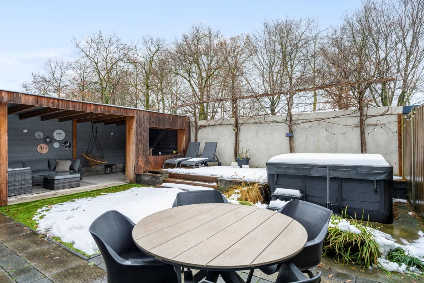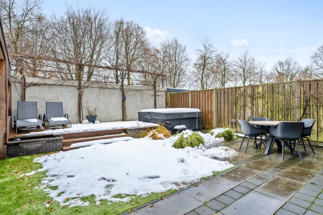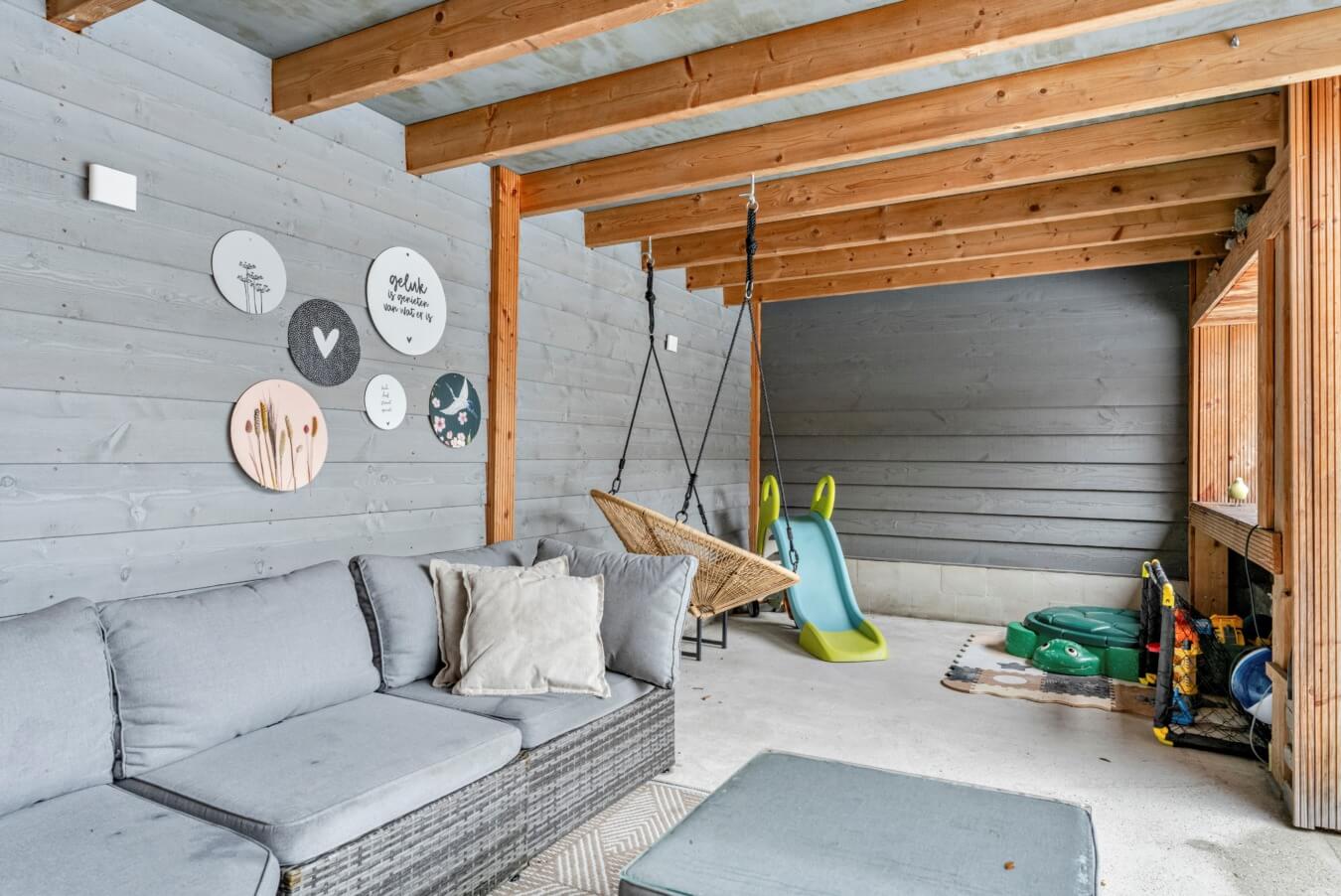 Het zal misschien geen verrassing zijn, maar ook de achtertuin is een absolute blikvanger. Hier vind je niet alleen een zonneterras en een verhoogd vlonderterras, maar ook een sfeervolle houten overkapping waar je kan relaxen als het weer het minder toelaat of je geen zin hebt in de volle zon. De tuin is verder onderhoudsvriendelijk en biedt volop privacy. Genieten geblazen!