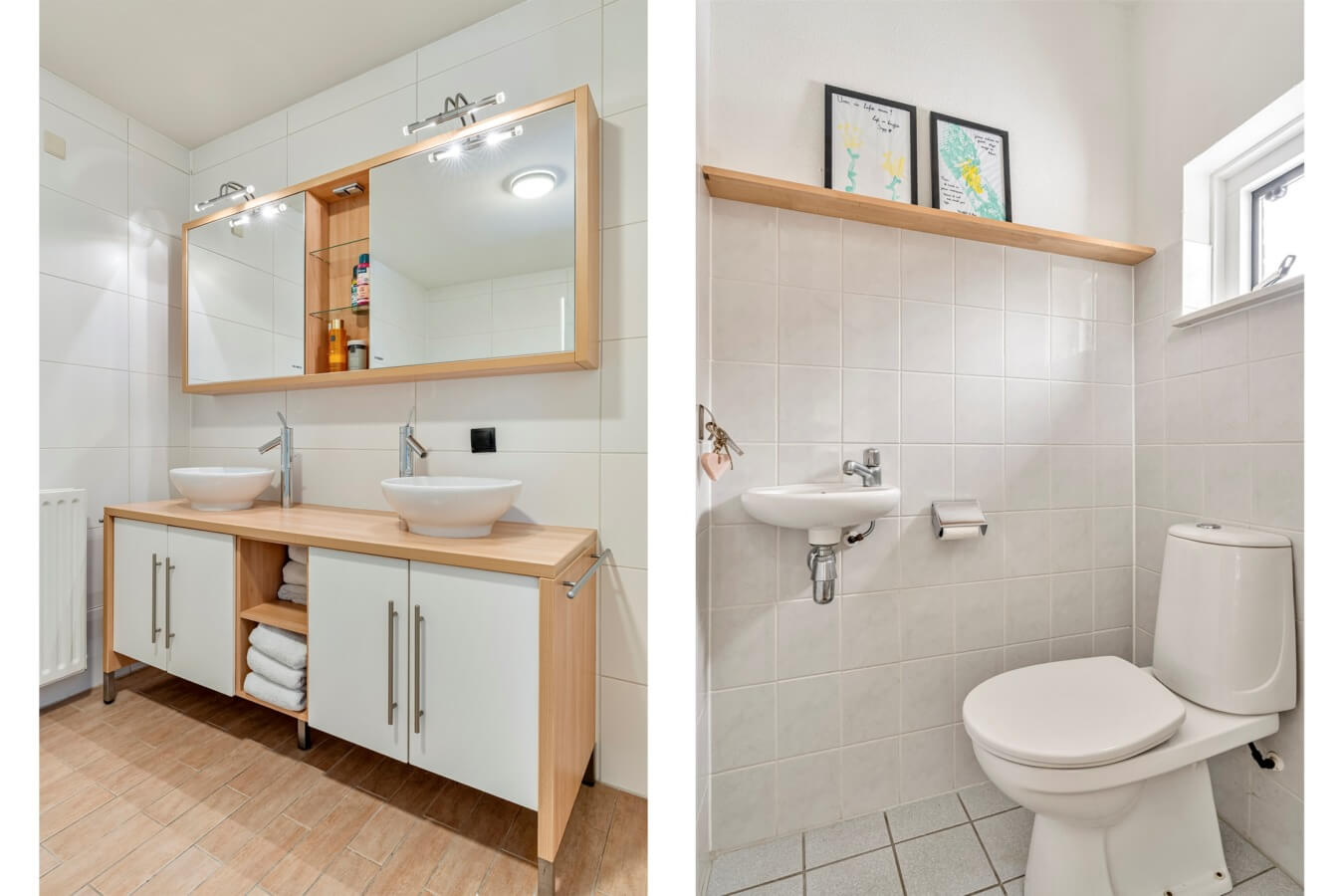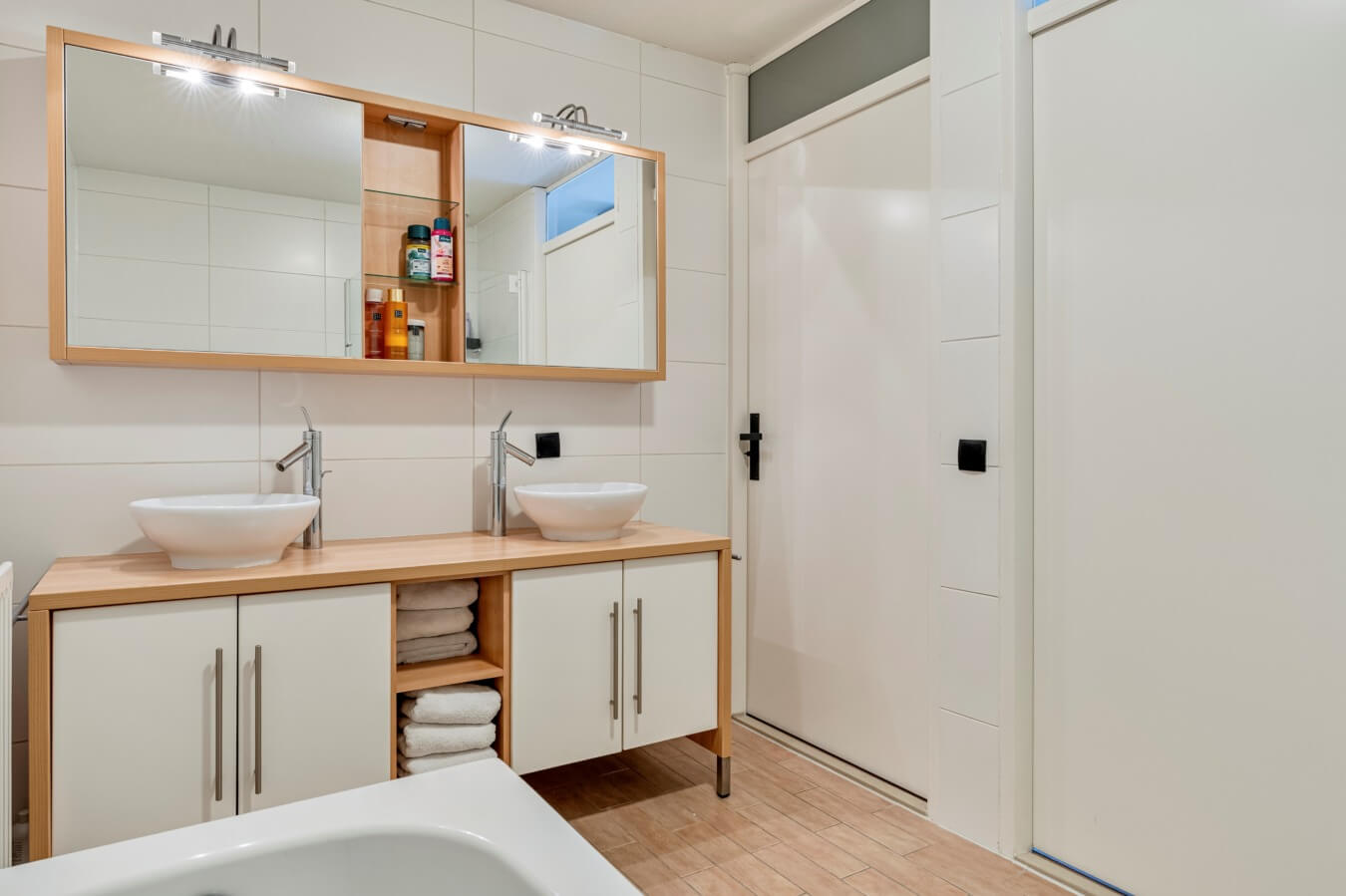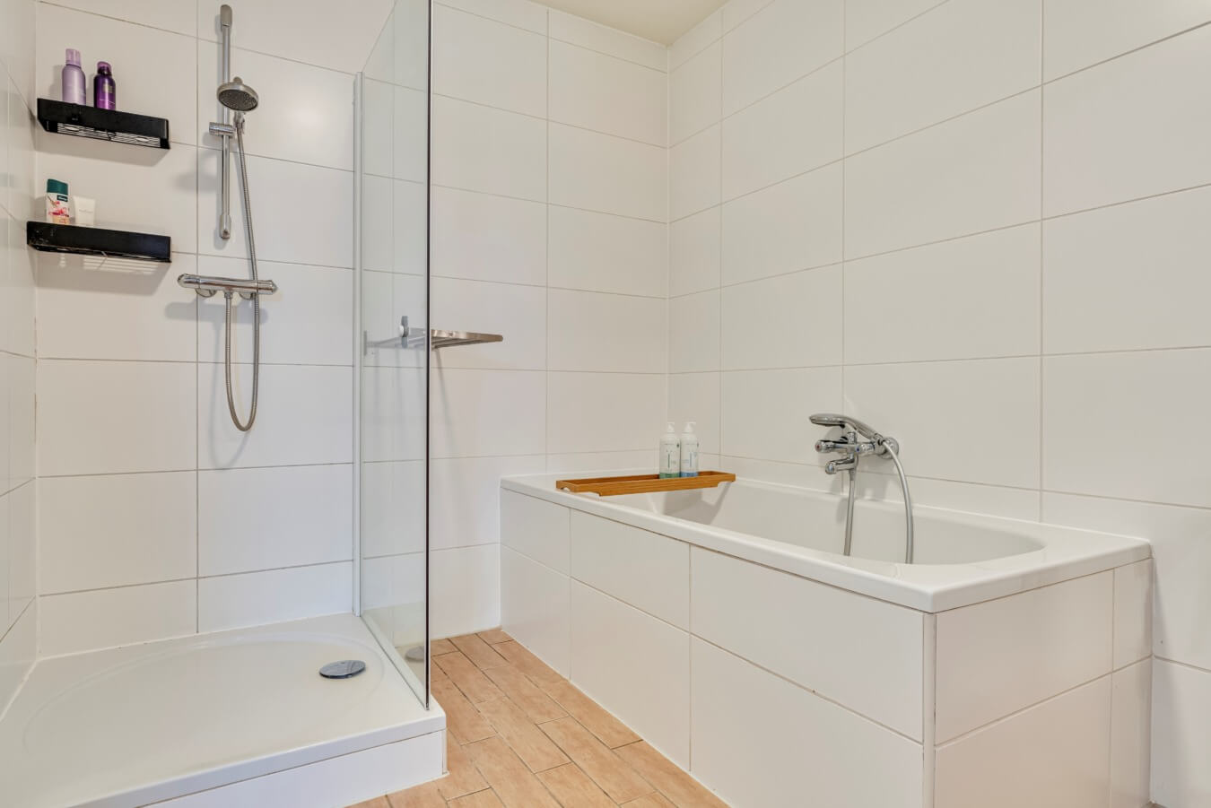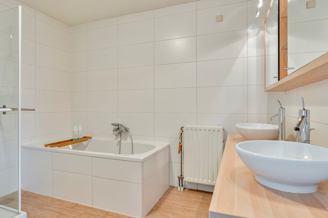 In het midden van de verdieping ontdek je de moderne badkamer. De ruimte is voorzien van een heerlijk ligbad, een aparte douche en een stijlvol dubbel wastafelmeubel. Wedden dat je hier na een lange dag perfect tot rust kan komen?