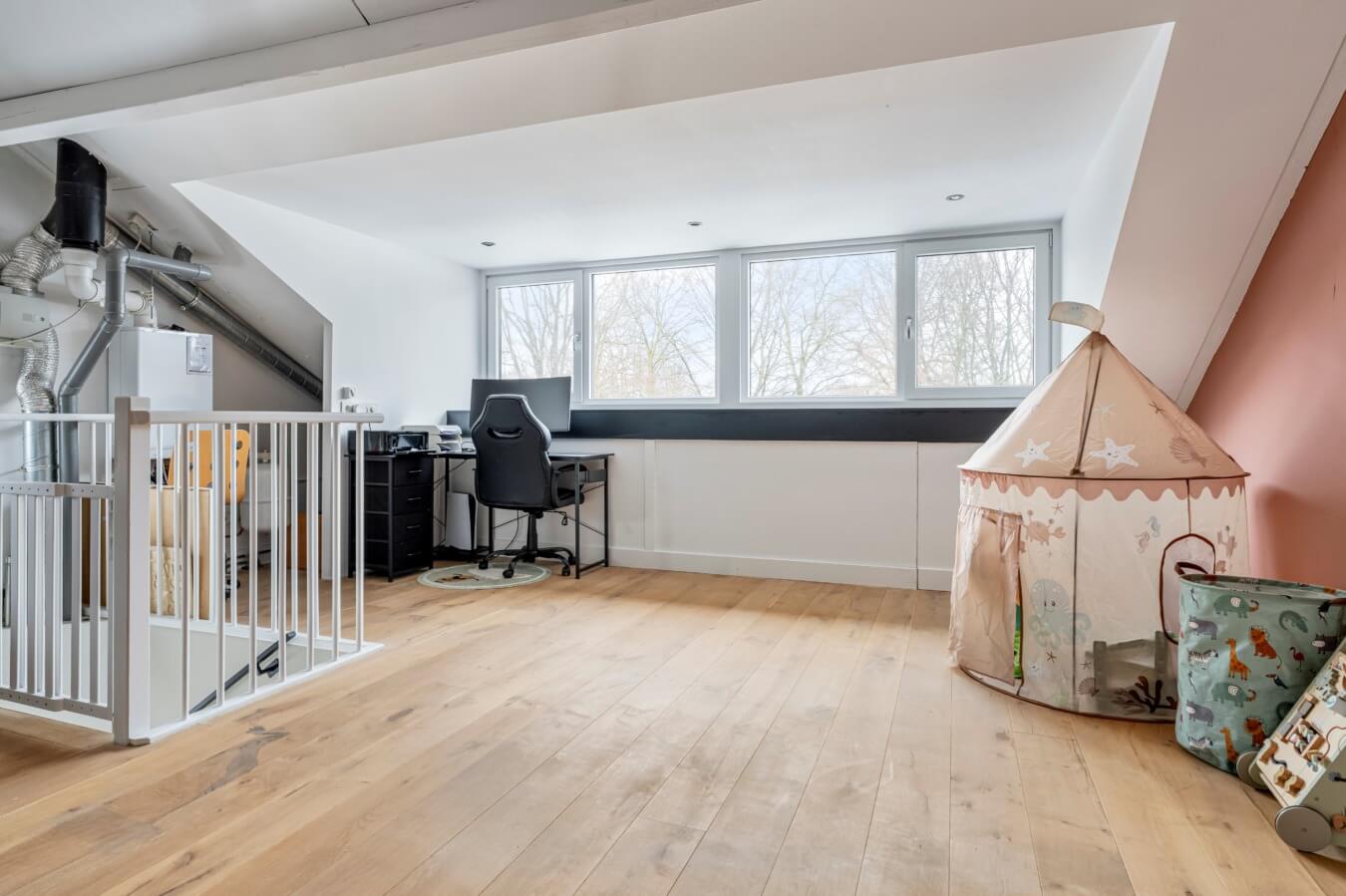 Op de tweede verdieping van de woning vind je de grote, nette en open zolder vol mogelijkheden. De mooie kamer met recent geplaatste dakkapel (2025) kan dienen als een geweldige vierde slaapkamer, maar is bijvoorbeeld ook zeer geschikt als hobby-, logeer-, of werkzolder. Of wilde je altijd al een eigen mancave?