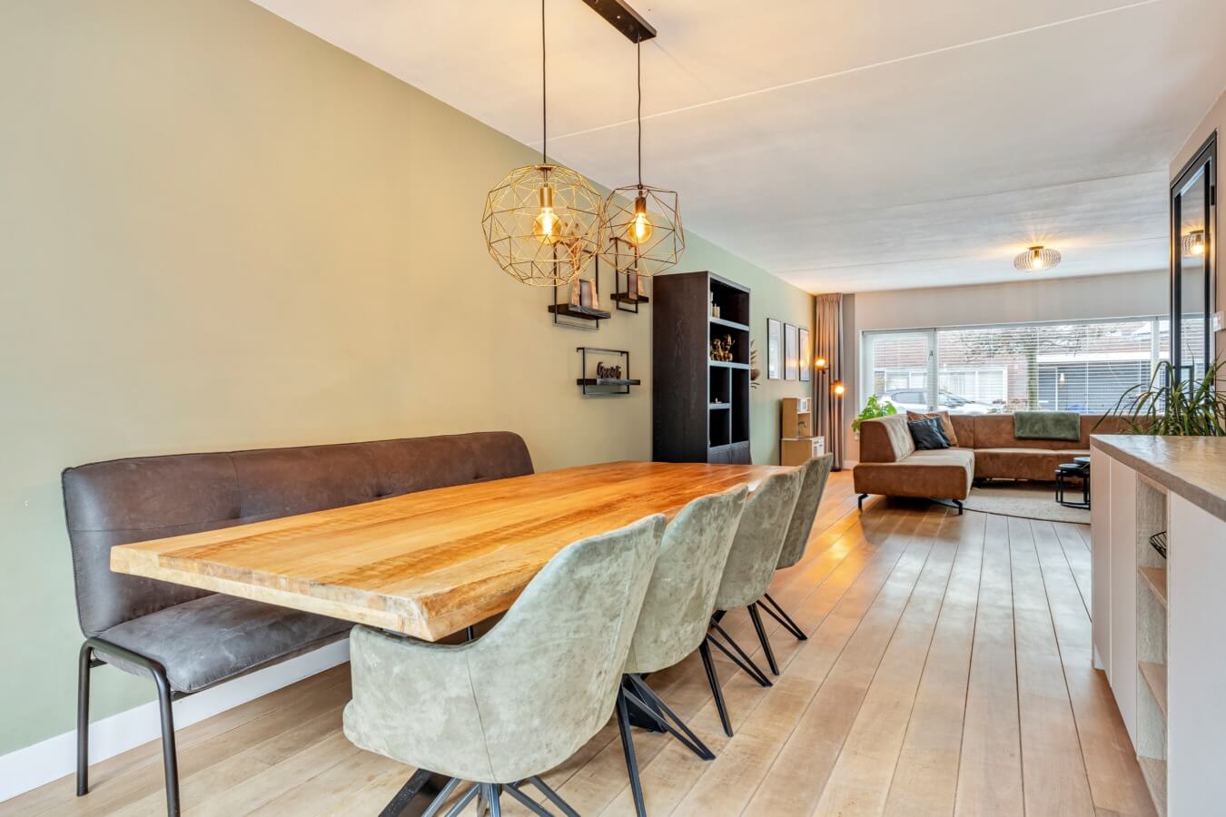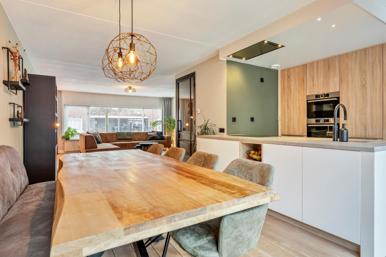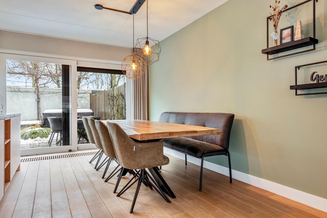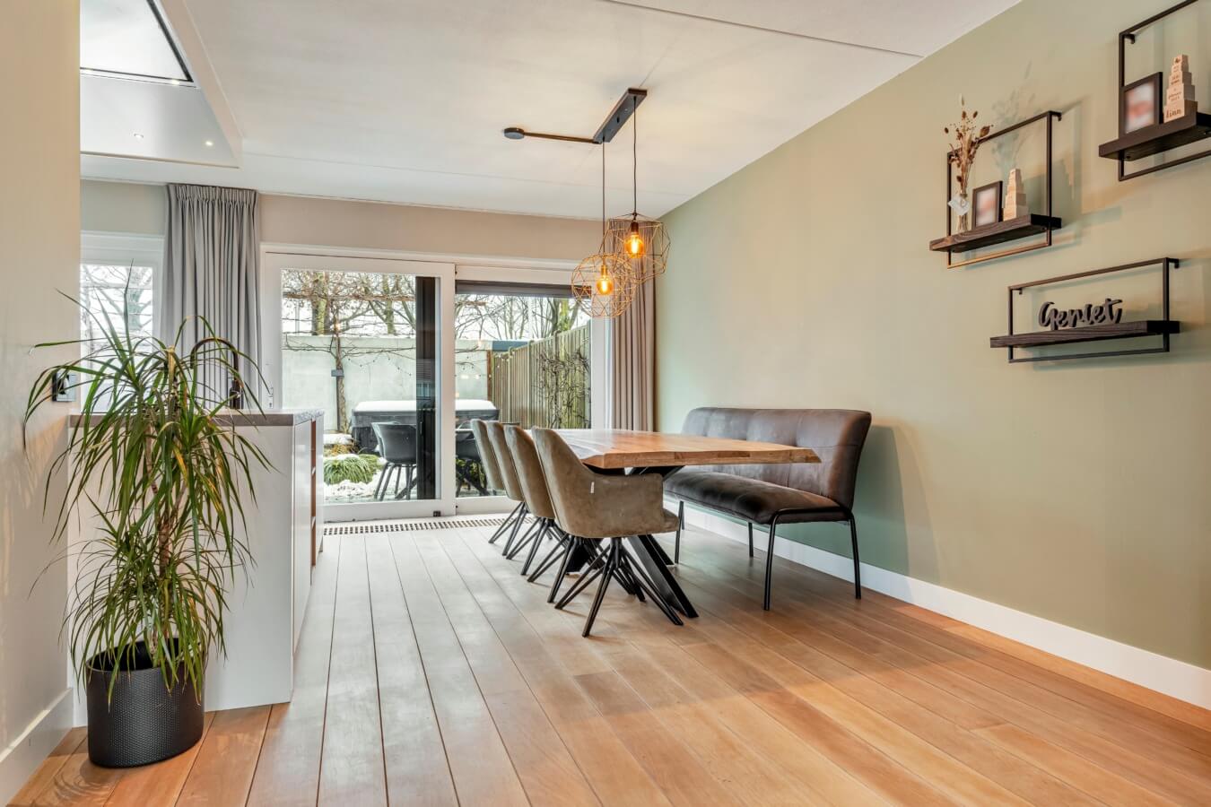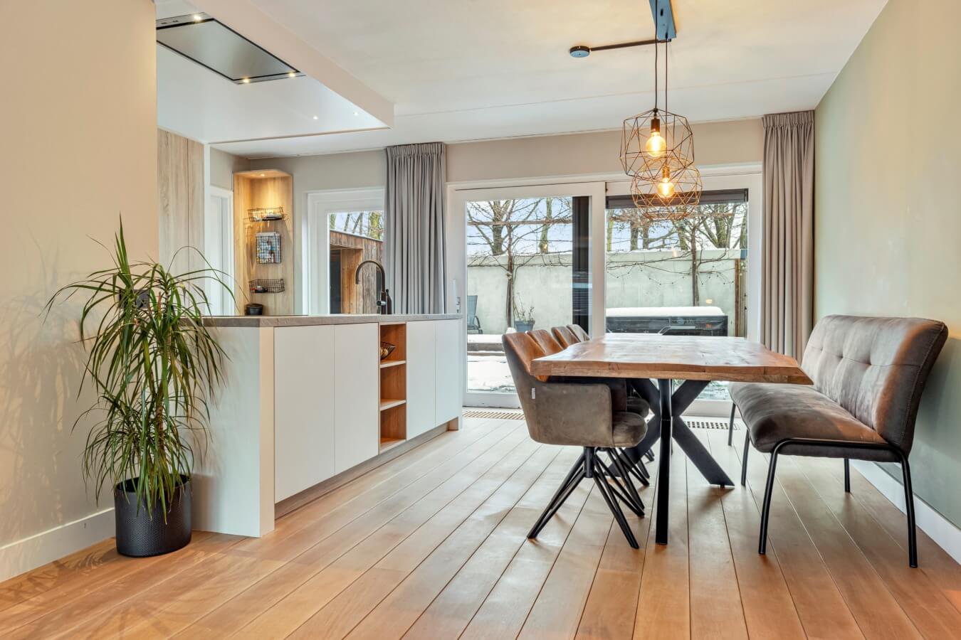 Voor een waanzinnig eetgedeelte is er plek in het stuk leefruimte aan de achterzijde, nabij de open keuken en de deuren naar de tuin. Als je hier niet urenlang wilt tafelen met jouw favoriete gezelschap, dan weten wij het ook niet meer.