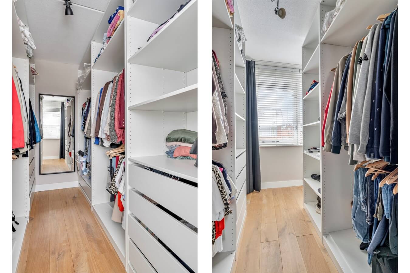De grootste slaapkamer ligt over de volledige breedte aan de voorzijde en beschikt werkelijk over alle elementen om een geweldige master bedroom te vormen. Lees: bakken aan licht en ruimte, airconditioning, eigen toegang tot de badkamer en – last but not least – een ensuite inloopkast.