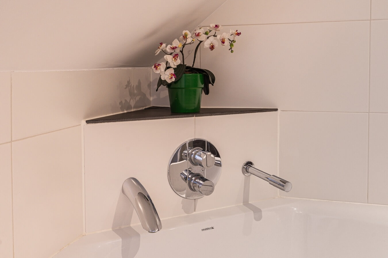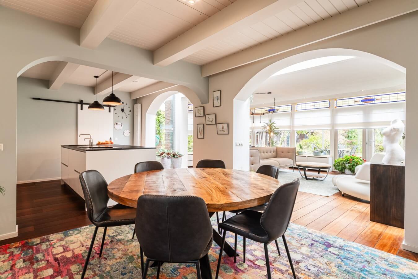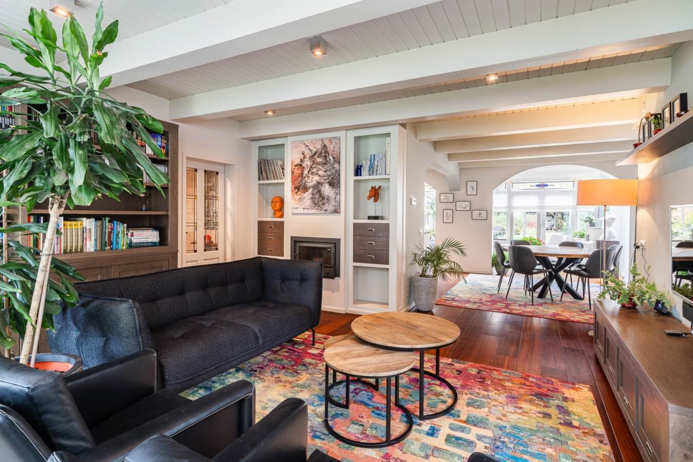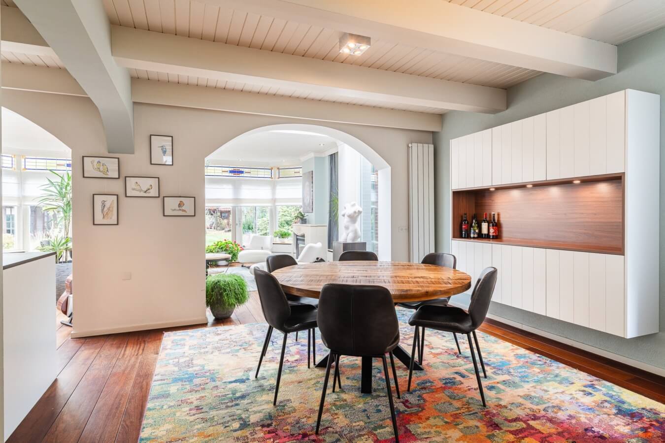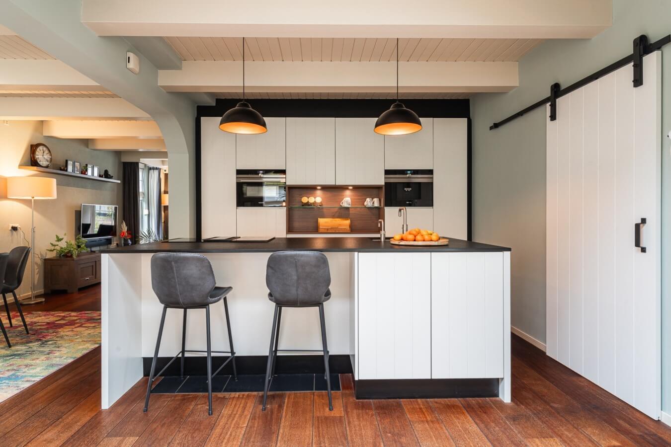 Centraal in de woonkamer ligt de open keuken, vernieuwd in 2021, met een losstaande opstelling en spoel/kookeiland. Vanuit hier heb je een prachtig uitzicht over de tuin. De keuken is voorzien van alle inbouwapparatuur en een stijlvol natuurstenen werkblad.