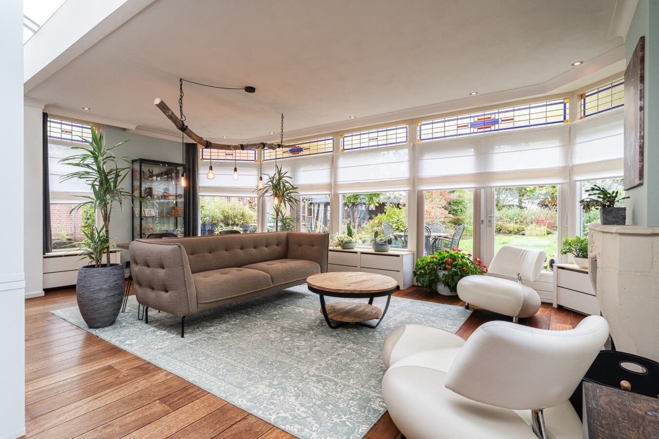 In 2001 werd de woning aan de achterzijde uitgebouwd met een indrukwekkende tuinkamer van circa 40 m² De combinatie van klassieke en moderne stijlelementen, een lichtstraat en glas-in-lood bovenlichten creëert een unieke, lichte leefruimte. De tuinkamer beschikt over tweemaal dubbele openslaande deuren naar de tuin en een sfeervolle schouwpartij met een inbouw pellet kachel.