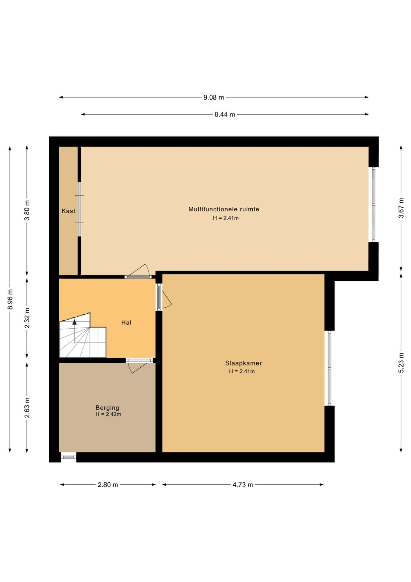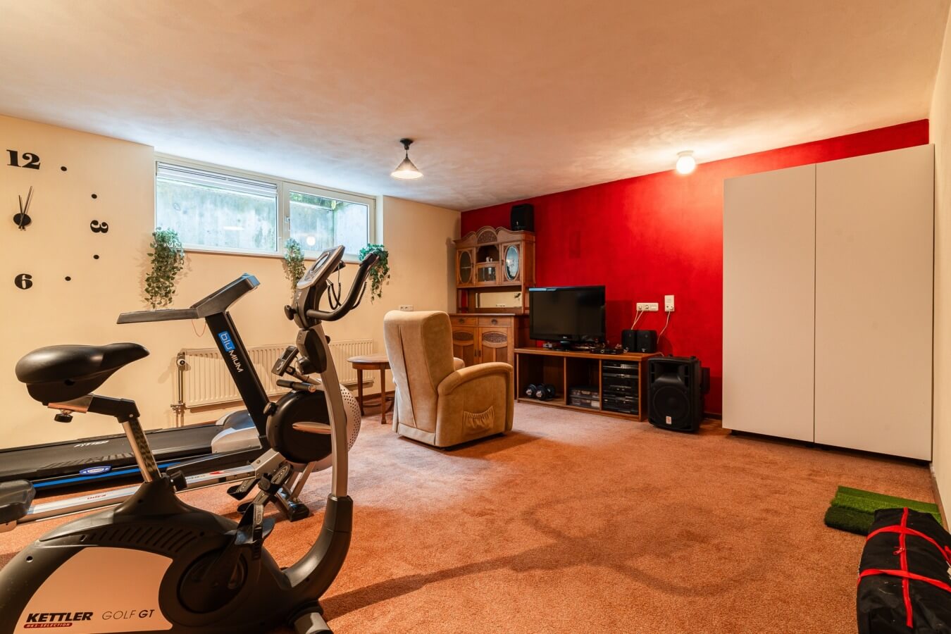 Vanuit de gang is het souterrain bereikbaar, dat momenteel is onderverdeeld in drie ruimten. Twee hiervan kunnen eenvoudig worden samengevoegd. Deze verdieping leent zich perfect voor een werkruimte, speelkamer of hobbyruimte of zelfs een sfeervolle bar of biljartkamer.