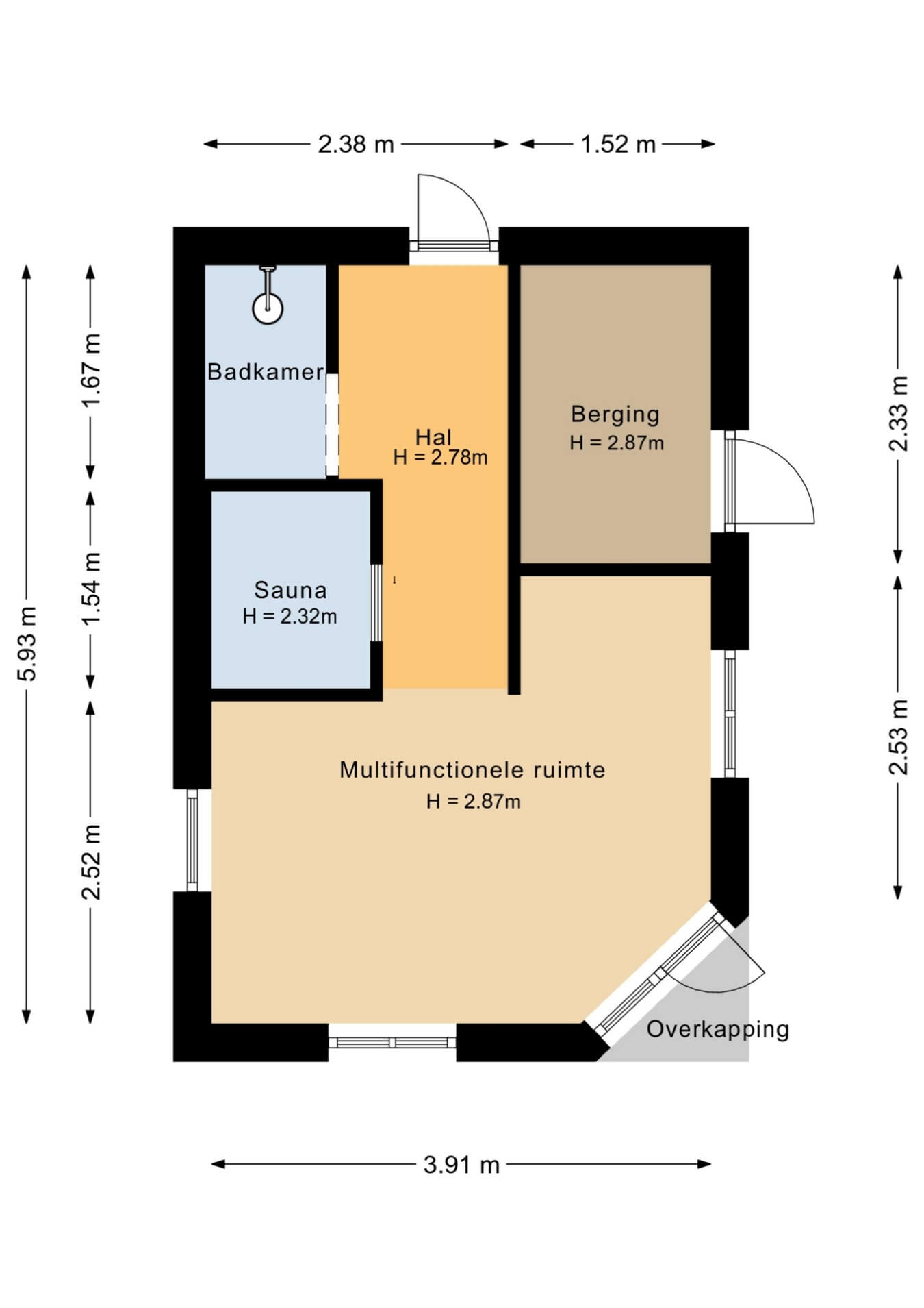 – Garage met wasmachine aansluiting, krachtstroom, verwarming en vliering