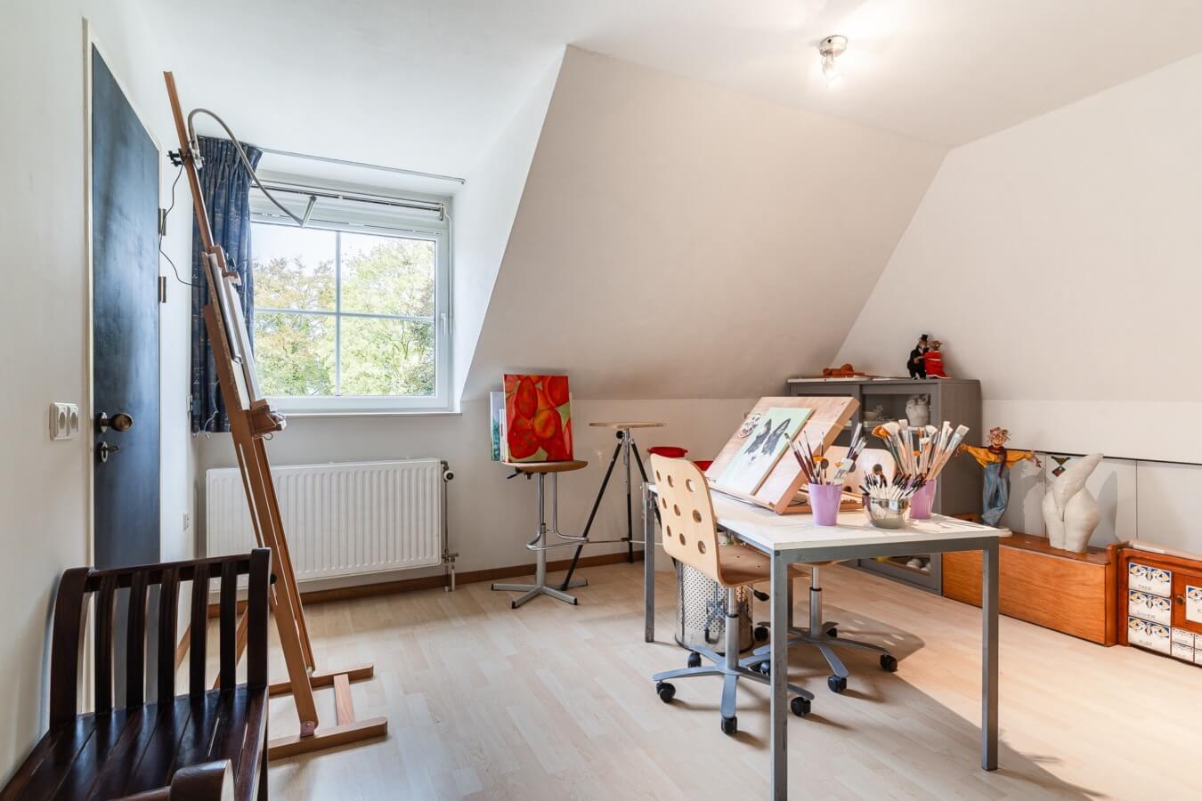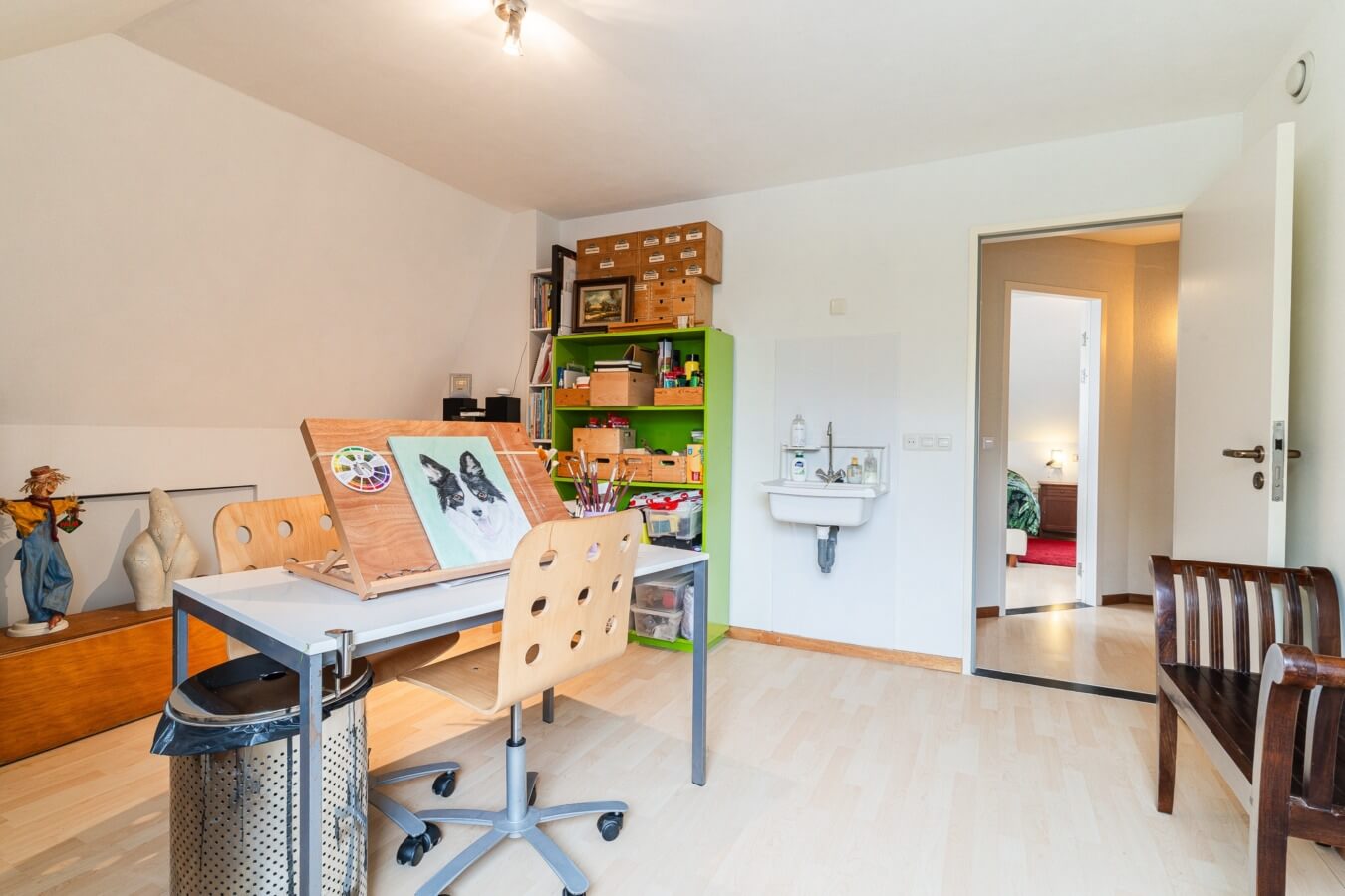 Via een vlizotrap bereik je de praktische bergzolder met cv-installatie. Ideaal voor extra opslagruimte.