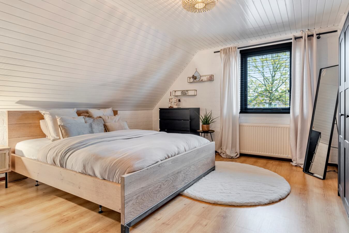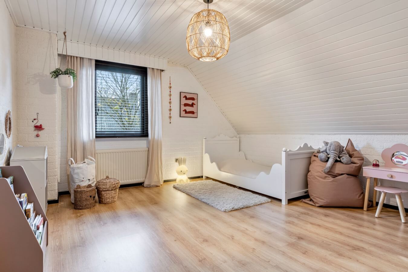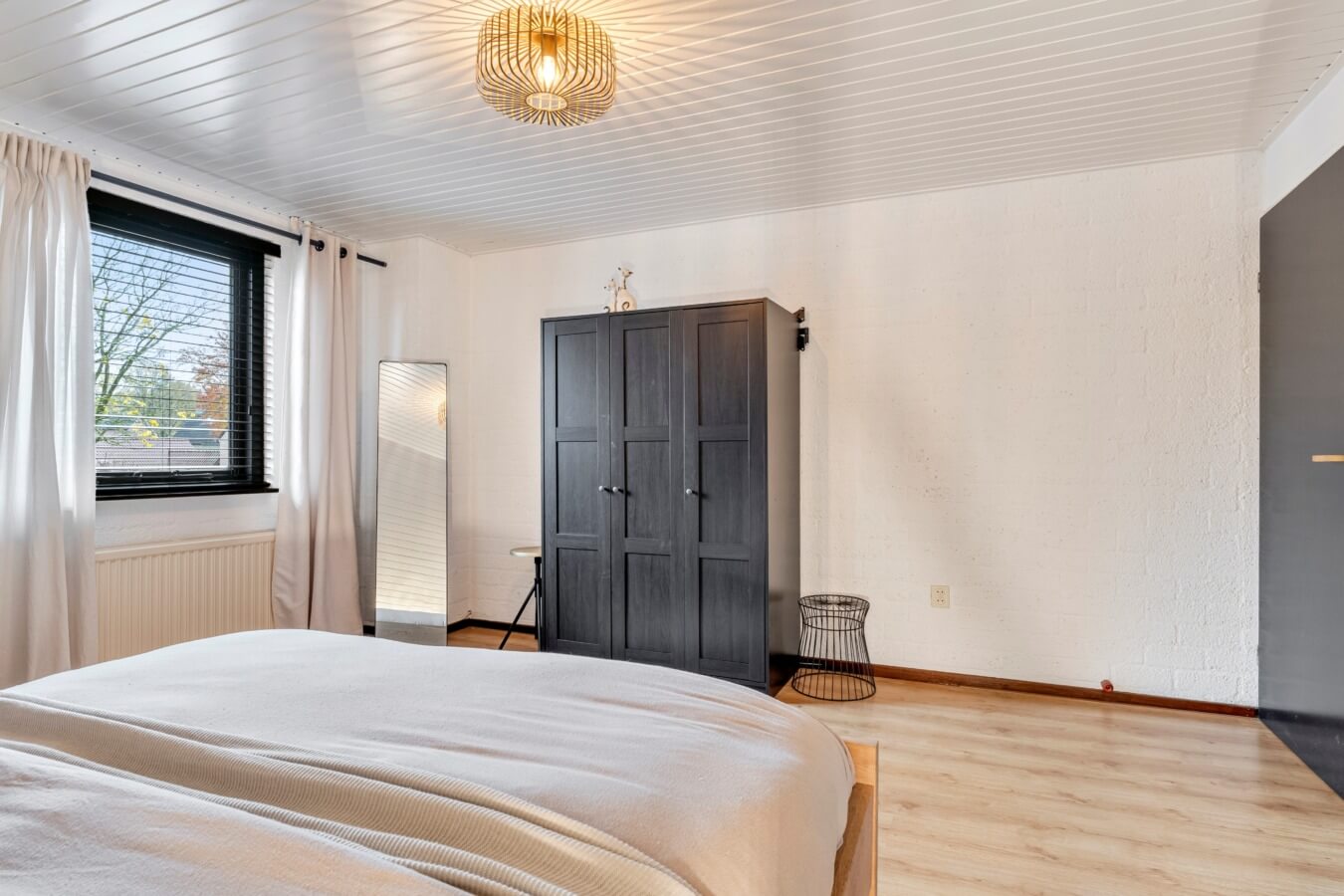 De open vide zorgt ook boven voor prachtig licht. De overloop biedt toegang tot vier ruime slaapkamers, allemaal uitgerust met laminaatvloer en goede lichtinval. Eén slaapkamer beschikt over een praktische inbouwkast.