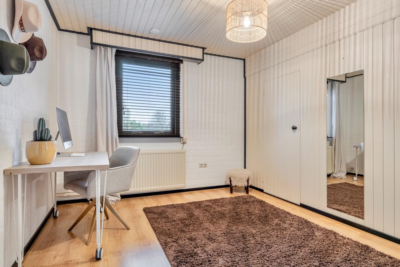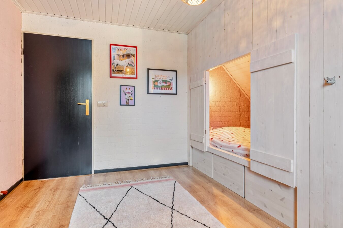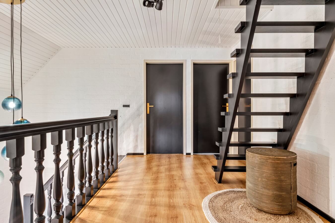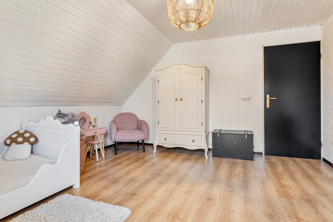 De open vide zorgt ook boven voor prachtig licht. De overloop biedt toegang tot vier ruime slaapkamers, allemaal uitgerust met laminaatvloer en goede lichtinval. Eén slaapkamer beschikt over een praktische inbouwkast.