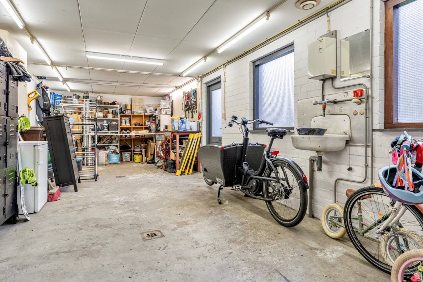 De vrijstaande garage van ruim 30 m² heeft een roldeur aan de voorzijde en een deur vanuit de tuin. Binnen vind je een wastafel met warm water en een gaskachel. De garage is voorzien van vloer-, muur- en dakisolatie en via een luik bereik je de ruime bergzolder. Ideaal voor hobby’s, opslag of werkruimte.