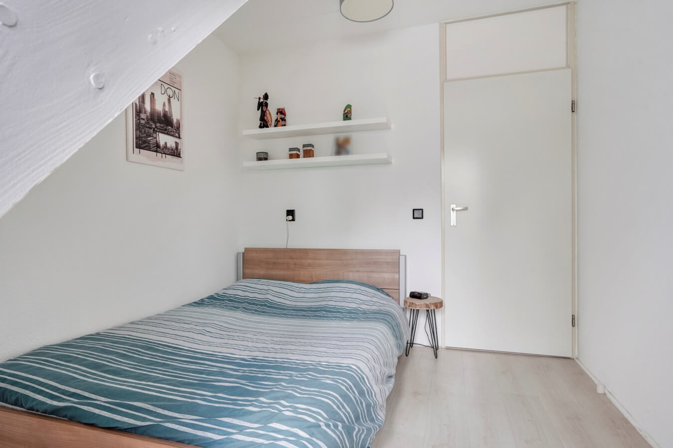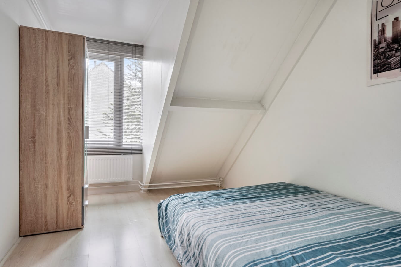 Aan de achterzijde liggen de twee iets kleinere kamers die allebei zijn uitgerust met een dakkapel. Deze kamers zijn uitermate geschikt als kinderkamer, logeerkamer, hobbyruimte of thuiswerkplek. Of droomde je altijd al van een inloopkast?