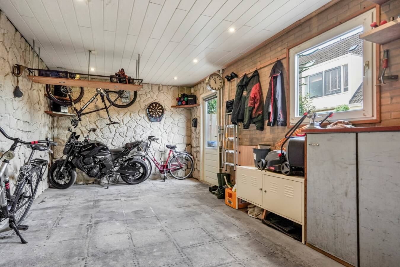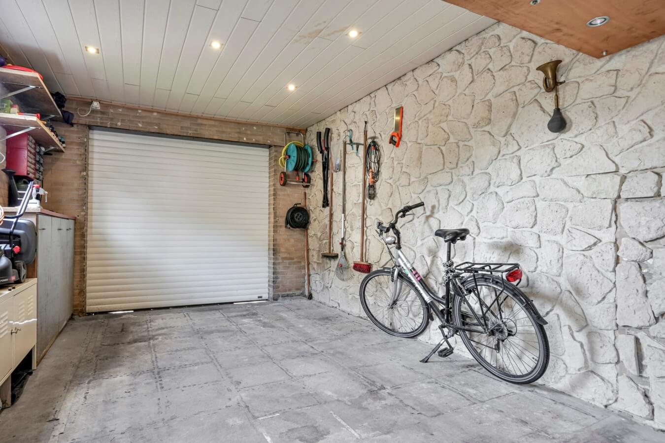 Achterin de tuin staat de ruime garage, die je kan inzetten als hobby- of klusruimte, maar die ook prima dienst kan doen als berging of als mancave.