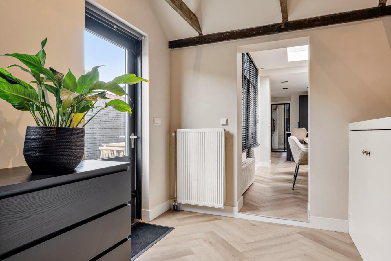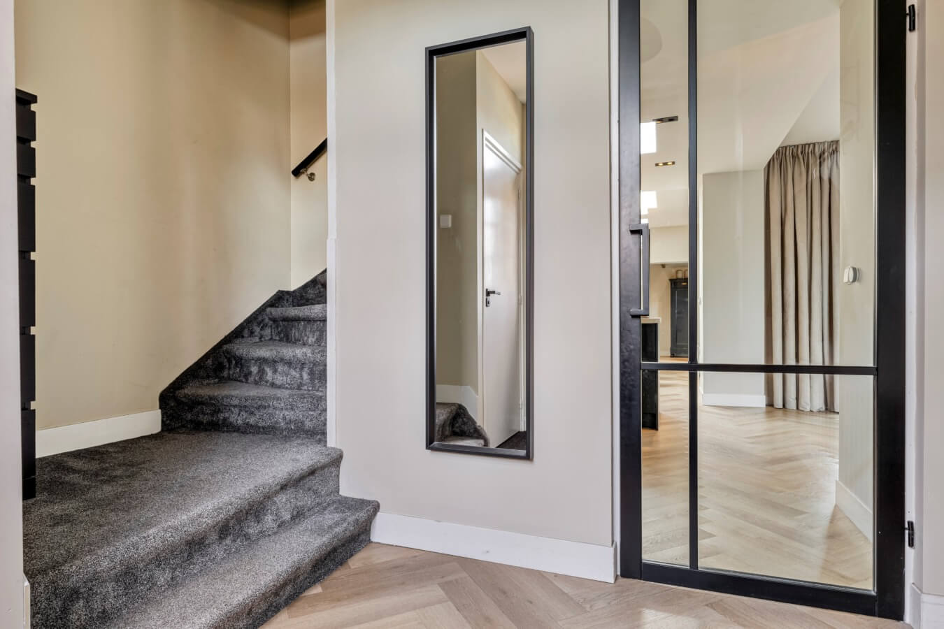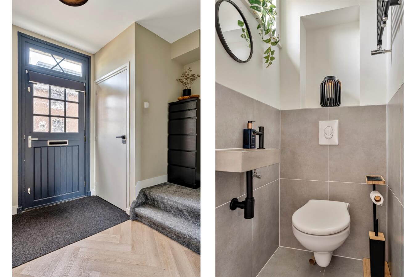 Stap binnen in de stijlvolle entree, waar meteen zichtbaar is dat deze woning fraai is afgewerkt. De hal biedt toegang tot de meterkast, de trapopgang, de moderne toiletruimte met hangend closet en fonteintje en de living. En die móét je zien.