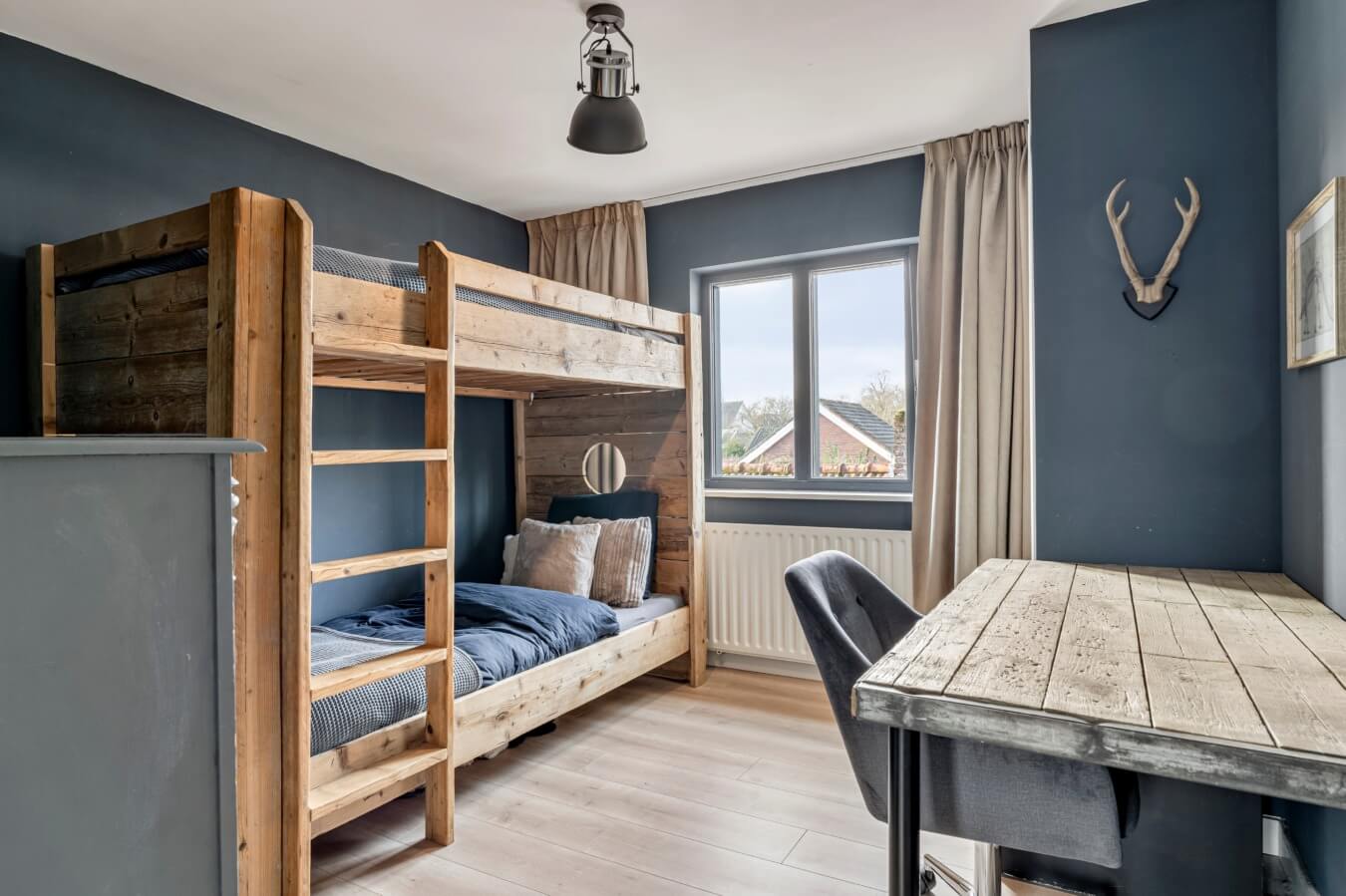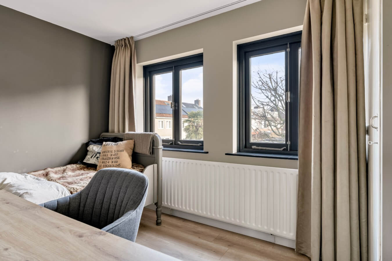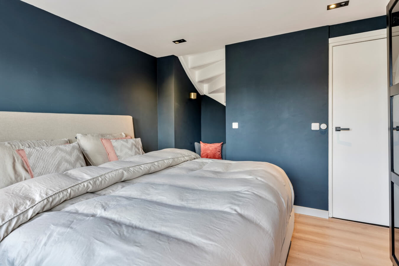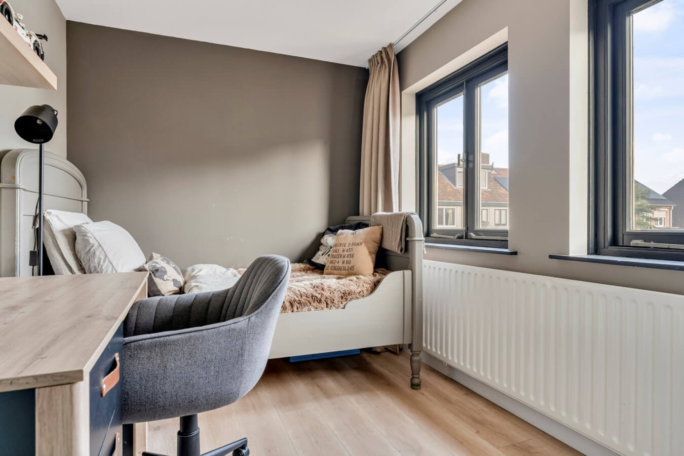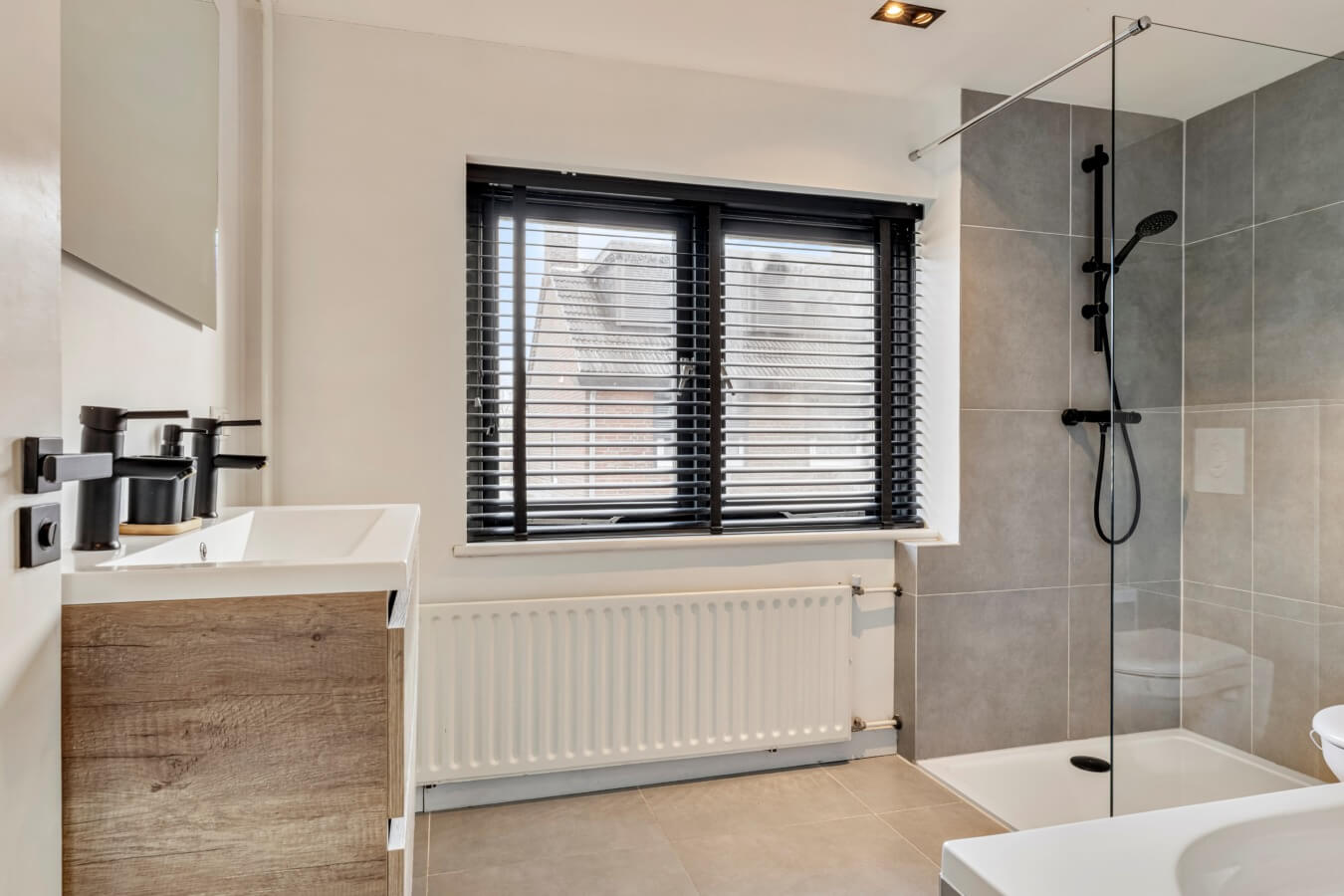 De twee grootste slaapkamers liggen samen over de volledige breedte van het huis aan de achterzijde. Allebei de kamers zijn mooi afgewerkt, aangenaam licht en meer dan ruim genoeg voor een tweepersoonsbed en andere gewenste slaapkamermeubels. Kortom: uitermate geschikt als master bedroom en kinderkamer. Good night!