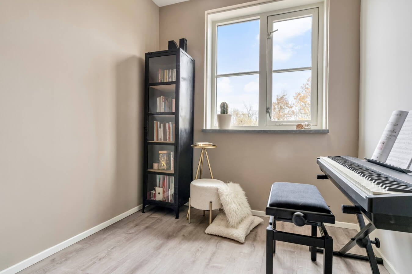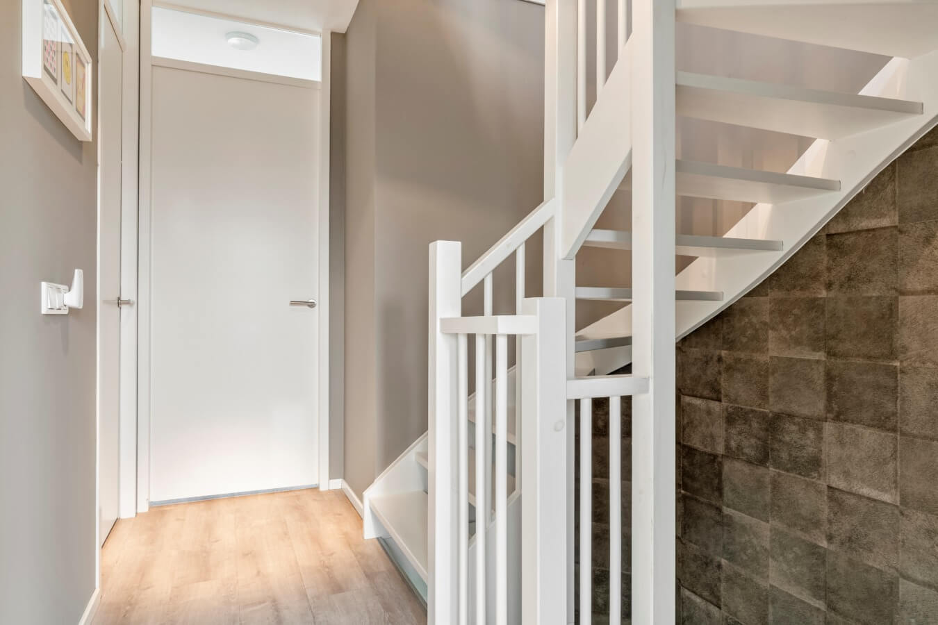 Middels de speelse wenteltrap in de woonkamer kom je op de overloop van de eerste verdieping. Op deze woonlaag bevinden zich drie slaapkamers en de badkamer die de woning rijk is. Let’s have a look.