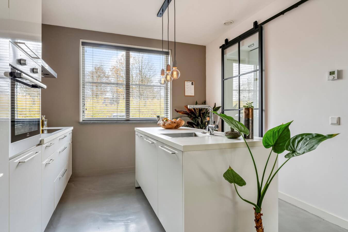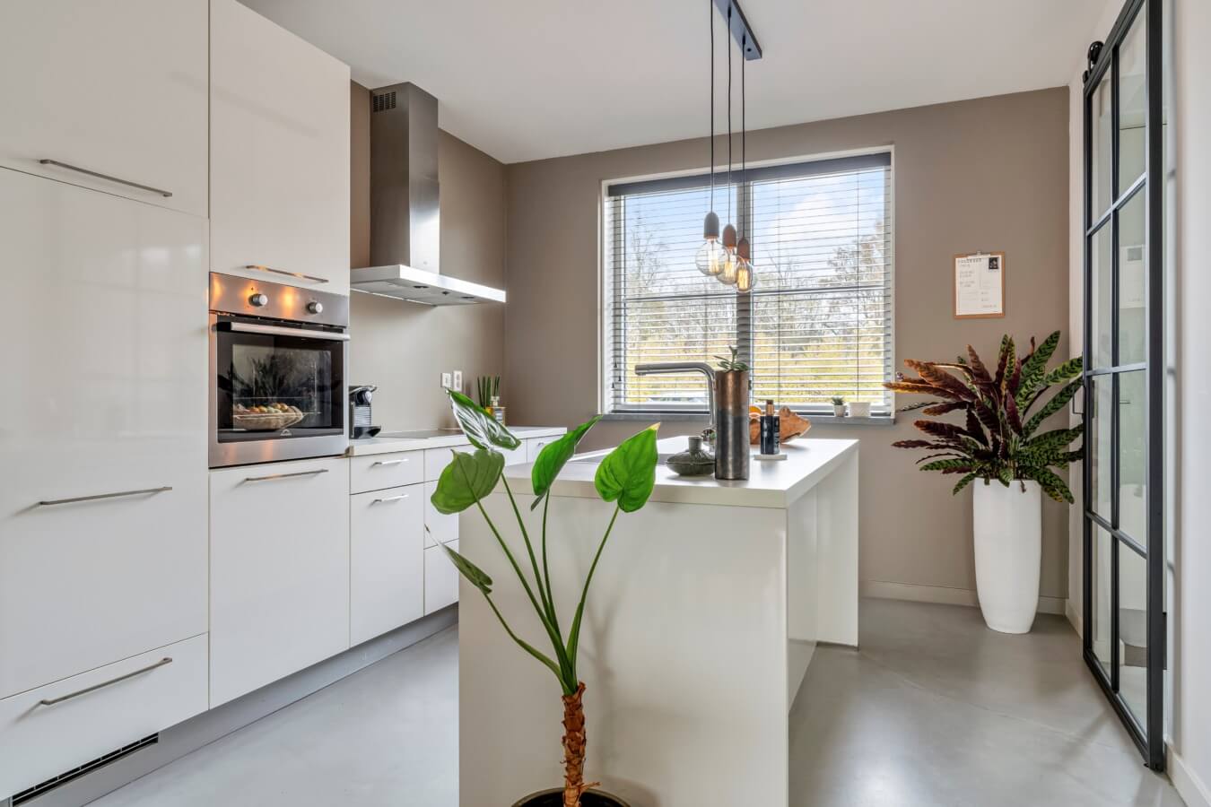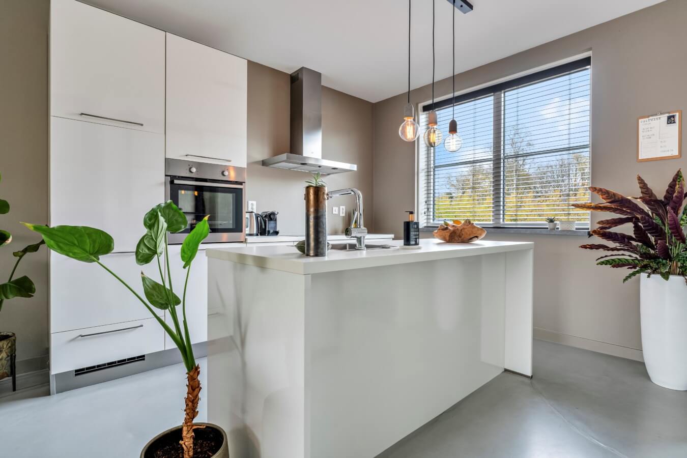 Over de keuken gesproken. Deze komt in een witte, moderne look en feel en is voorzien van diverse soorten inbouwapparatuur en veel werk- en bergruimte. Het eiland middenin de keuken, wat een extra luxe uitstraling verzorgt, zal je ook niet zijn ontgaan. Dat wordt dagelijks kokkerellen in stijl, terwijl je door de open opstelling gewoon kan blijven kletsen met het gezelschap aan tafel.