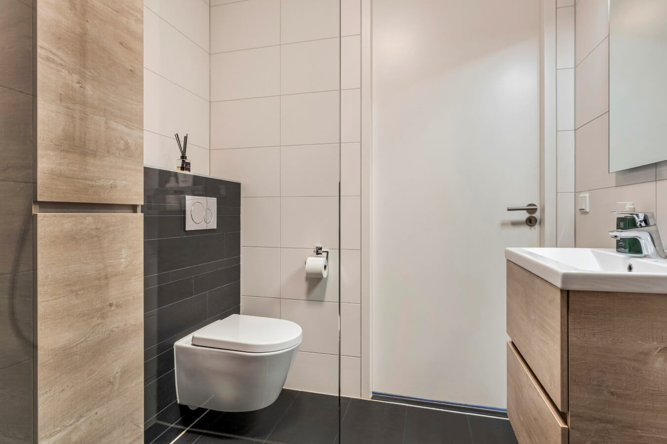 Nog niet overtuigd? Dan is het de hoogste tijd om de moderne badkamer te gaan bekijken, die met haar inloopregendouche de juiste omstandigheden biedt om even fijn te ontspannen na een lange dag. Verder beschik je hier over een hangend closet, een modern wastafelmeubel en een handige kast.
