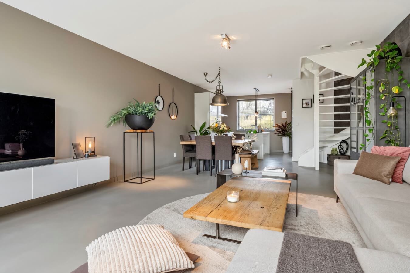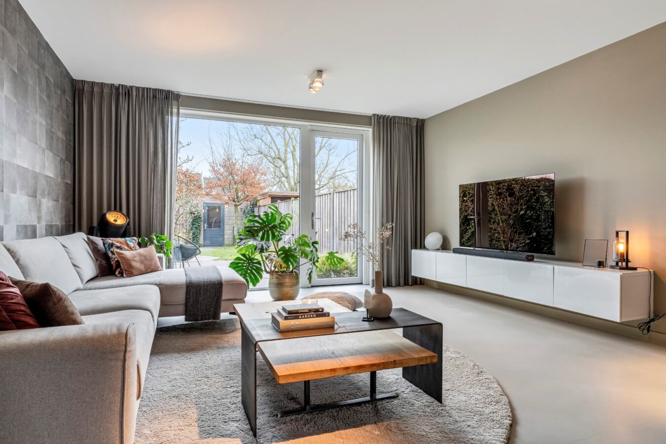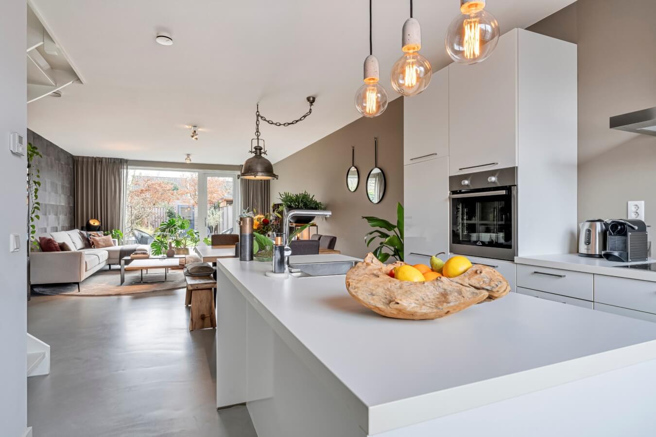 En die woonkamer is wat men bedoelt met mooi wonen. Je kan hier gemakkelijk een apart zit- en eetgedeelte realiseren, zoals de huidige bewoners dat hebben gedaan. Terwijl de voetjes heerlijk omhoog kunnen op de bank nabij de tuin aan de achterzijde (bij de grote raampartijen), eet je gezellig met zijn allen in het eetgedeelte aan de open keuken. Het fijnste van alles is dan ook dat de living zo netjes is afgewerkt, dat hier alleen nog maar jouw eigen meubels missen.