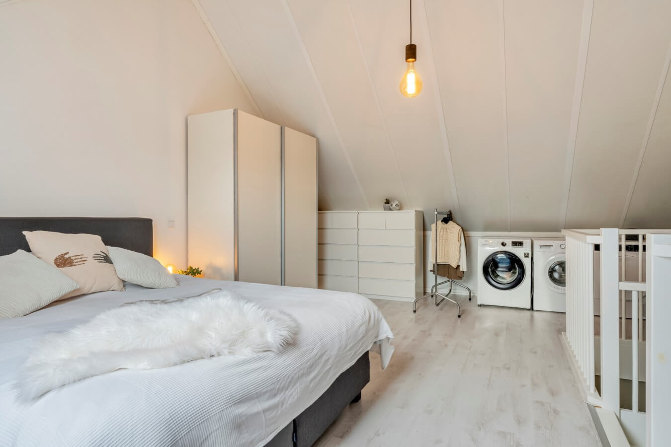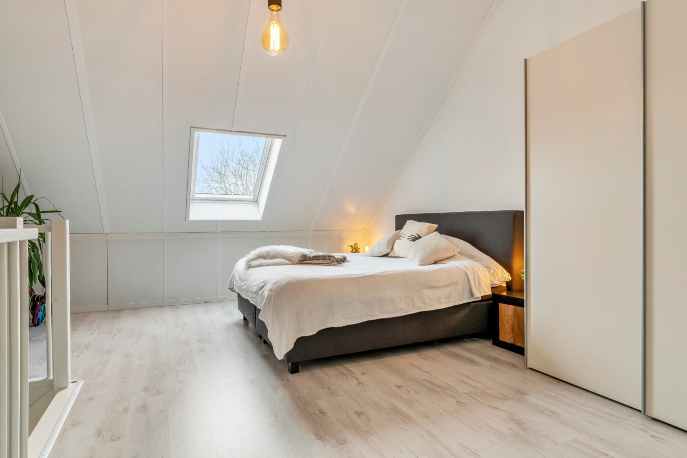 Wanneer je de vaste trap volgt naar de tweede verdieping, kom je terecht op de ruime zolder van de woning. Hier ontdek je de CV-ketel, de aansluitingen voor wasapparatuur en – veel belangrijker – de vierde en laatste slaapkamer.