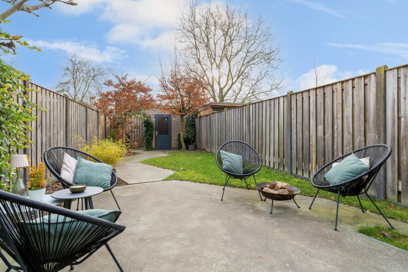 Last but not least, gaan we kijken naar de moderne, netjes aangelegde tuin op het zonnige zuiden. Deze is via de tuindeur in de woonkamer te bereiken en beschikt over een heerlijk lounge-terras in de zon, graspartijen, een handige vrijstaande berging én een achterom.