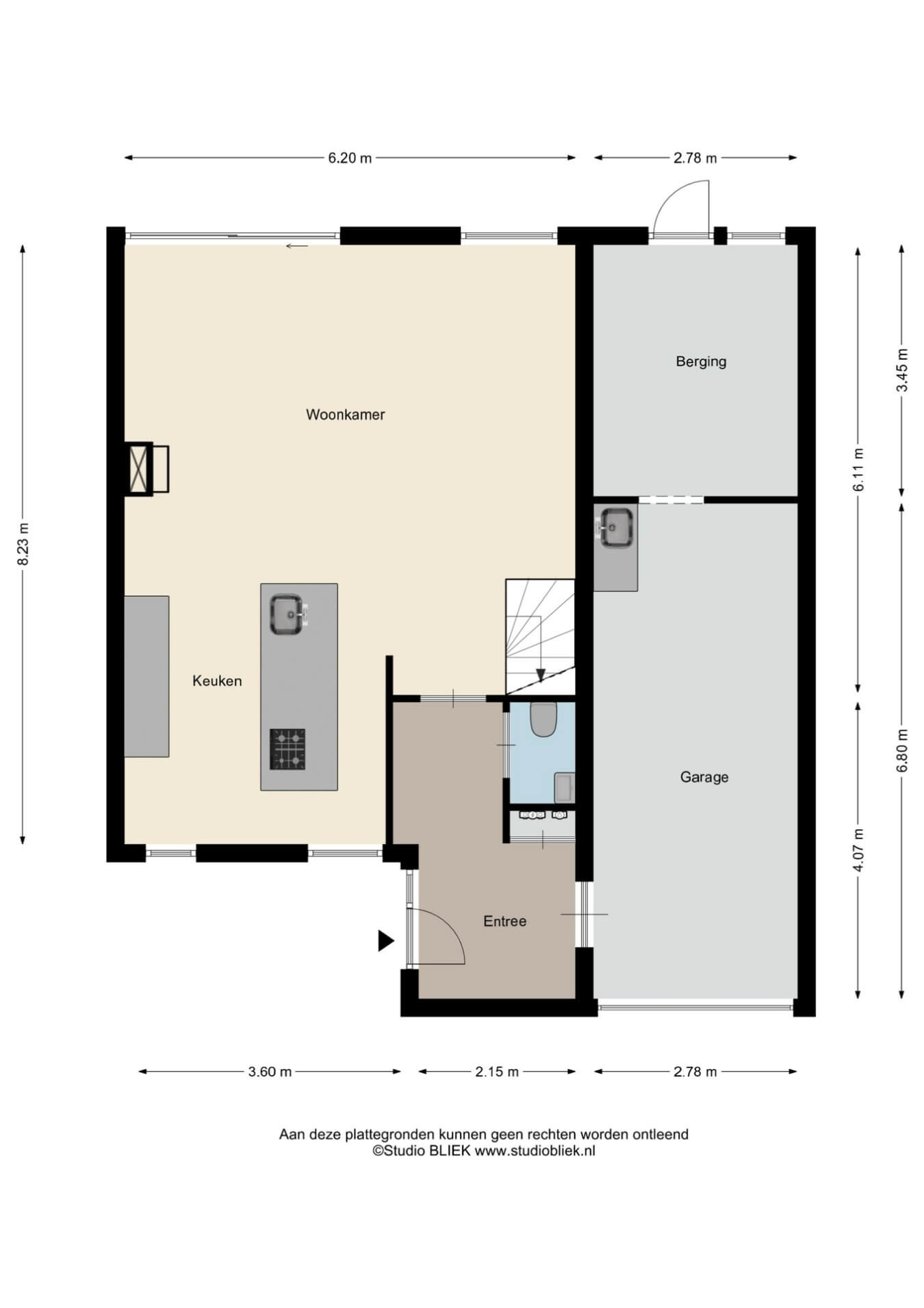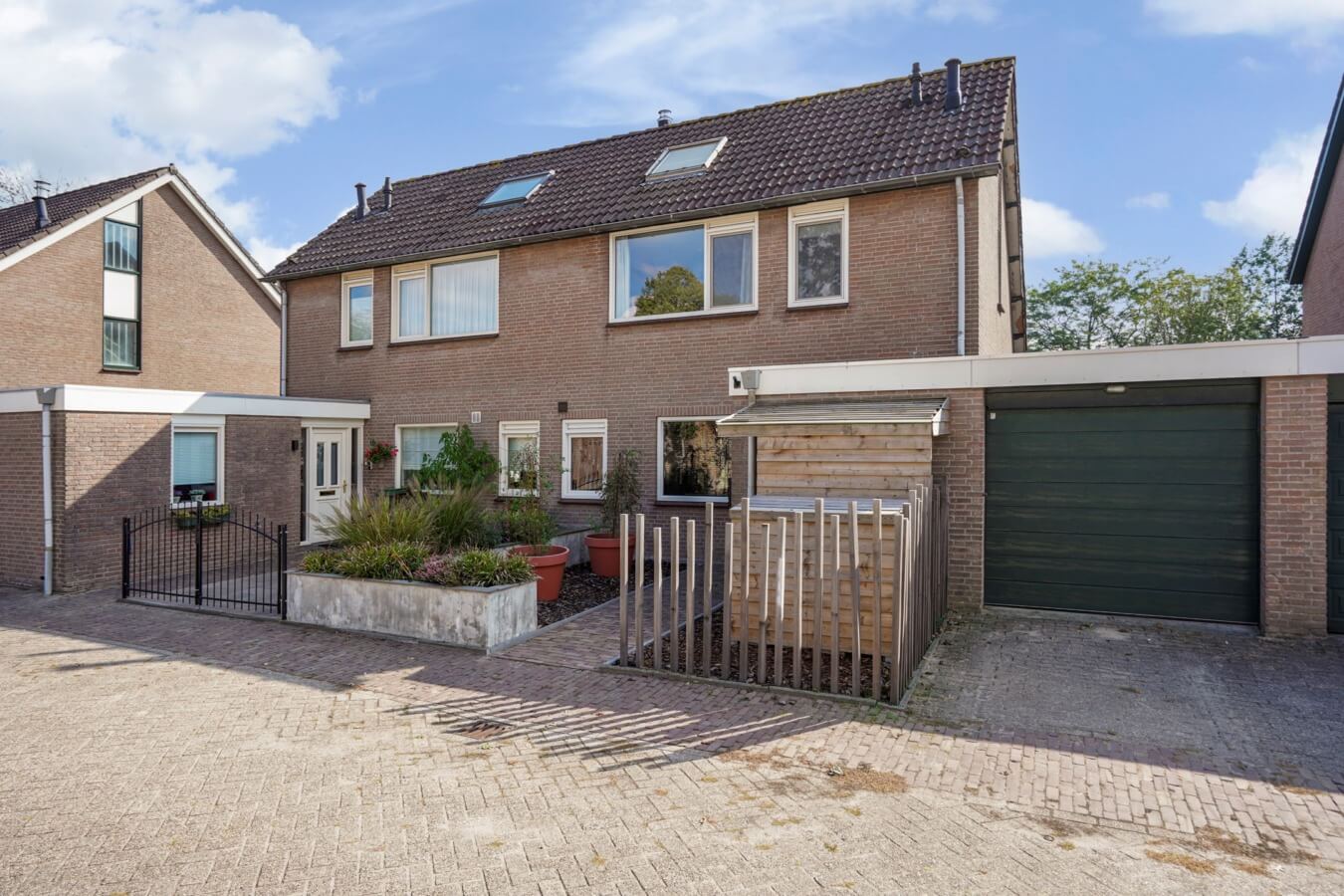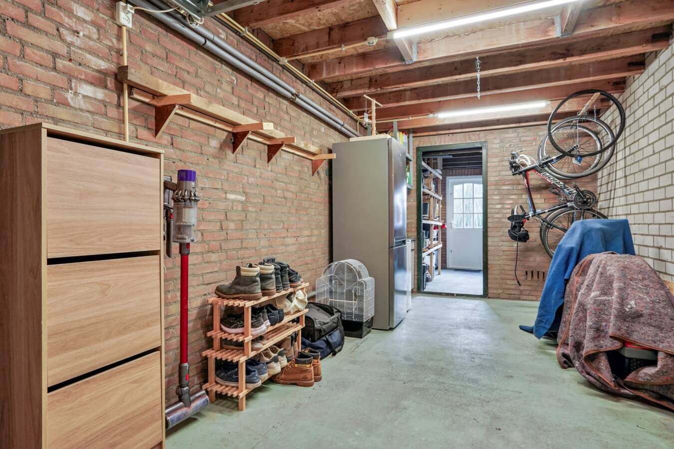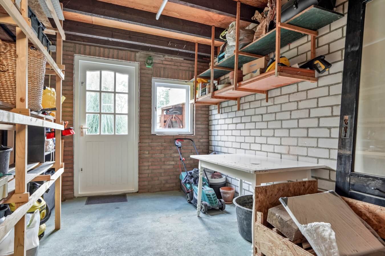 Terwijl je naar de voordeur loopt en je oog laat vallen op de keurig aangelegde voortuin (met een overkapping voor de fietsen), zal de garage aan je rechterhand je niet ontgaan. Deze is aangenaam ruim en kan zowel via de voortuin als de achtertuin bereikt worden. Goed, tijd voor het echte werk. Sesam open u!