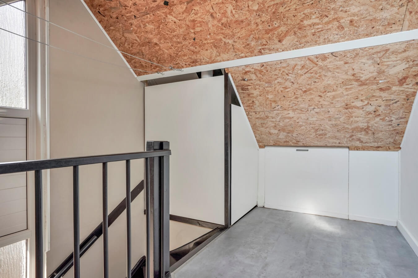 Middels een vaste trap kom je terecht op de overloop van de tweede verdieping. Hier vind je de de opstelling van de CV-combiketel en bergschotten onder de kapschuinte, dus de voorzolder kan optimaal worden benut.