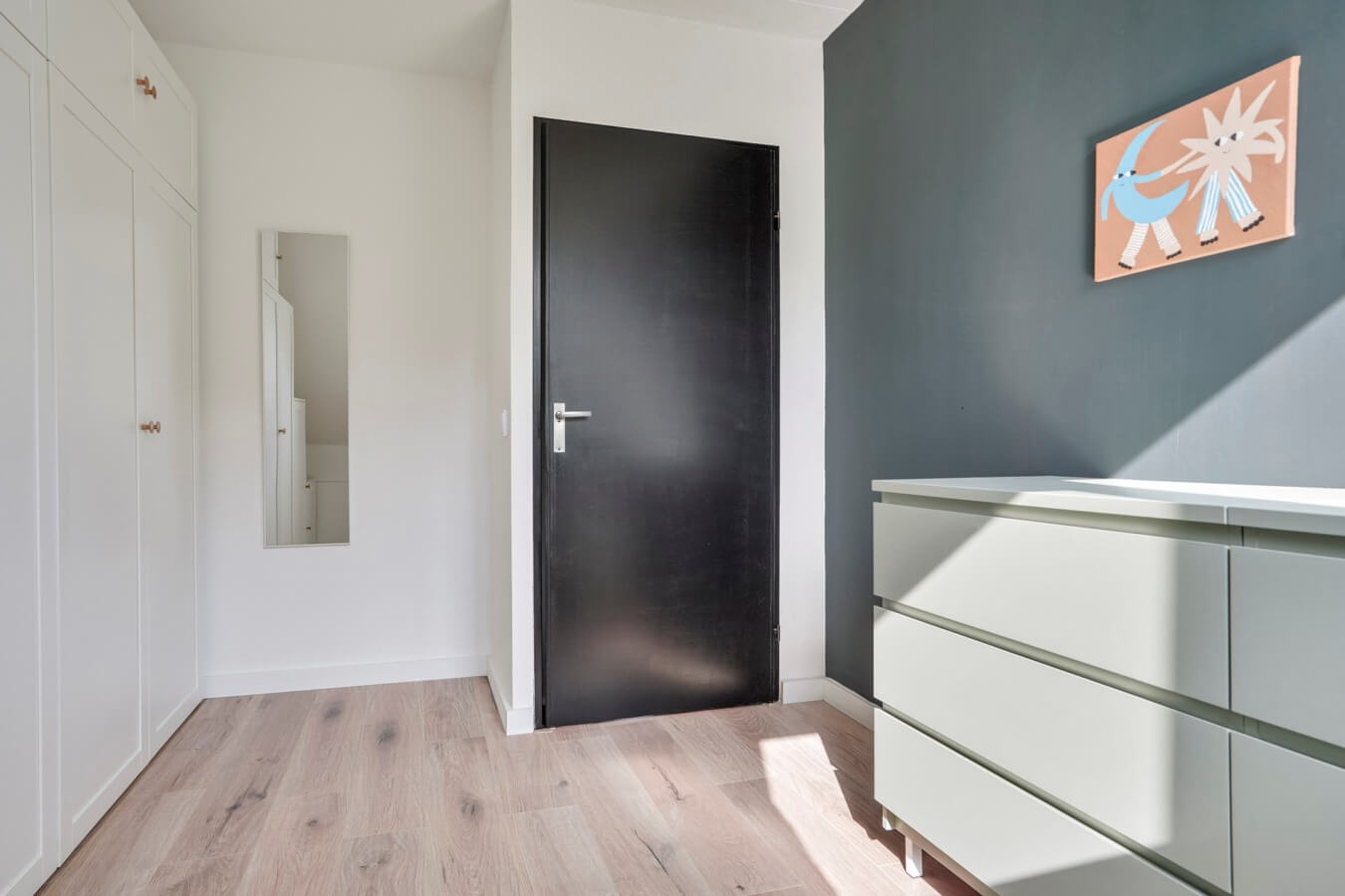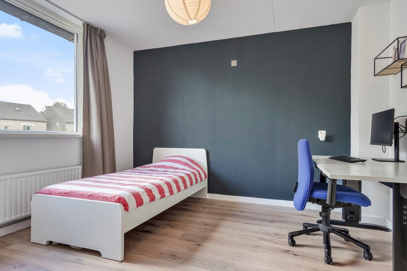 De twee grootste slaapkamers van de verdieping zijn samen over de volledige lengte aan de linkerzijde gesitueerd. De kamers zijn allebei aangenaam licht, ruim genoeg voor alle gewenste slaapkamermeubels en strak afgewerkt, en dus beiden uitermate geschikt als master bedroom en kinderkamer. De derde slaapkamer bevindt zich aan de rechterzijde van de woning. Mocht je nu niet zoveel slaapkamers nodig hebben, dan zijn de overige ruimtes op deze verdieping bijvoorbeeld ook perfect in te zetten als werk- of studeerkamer, fitnessruimte of inloopkast. Het is helemaal aan jou.