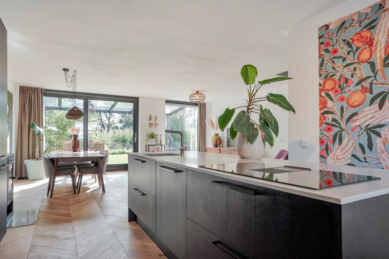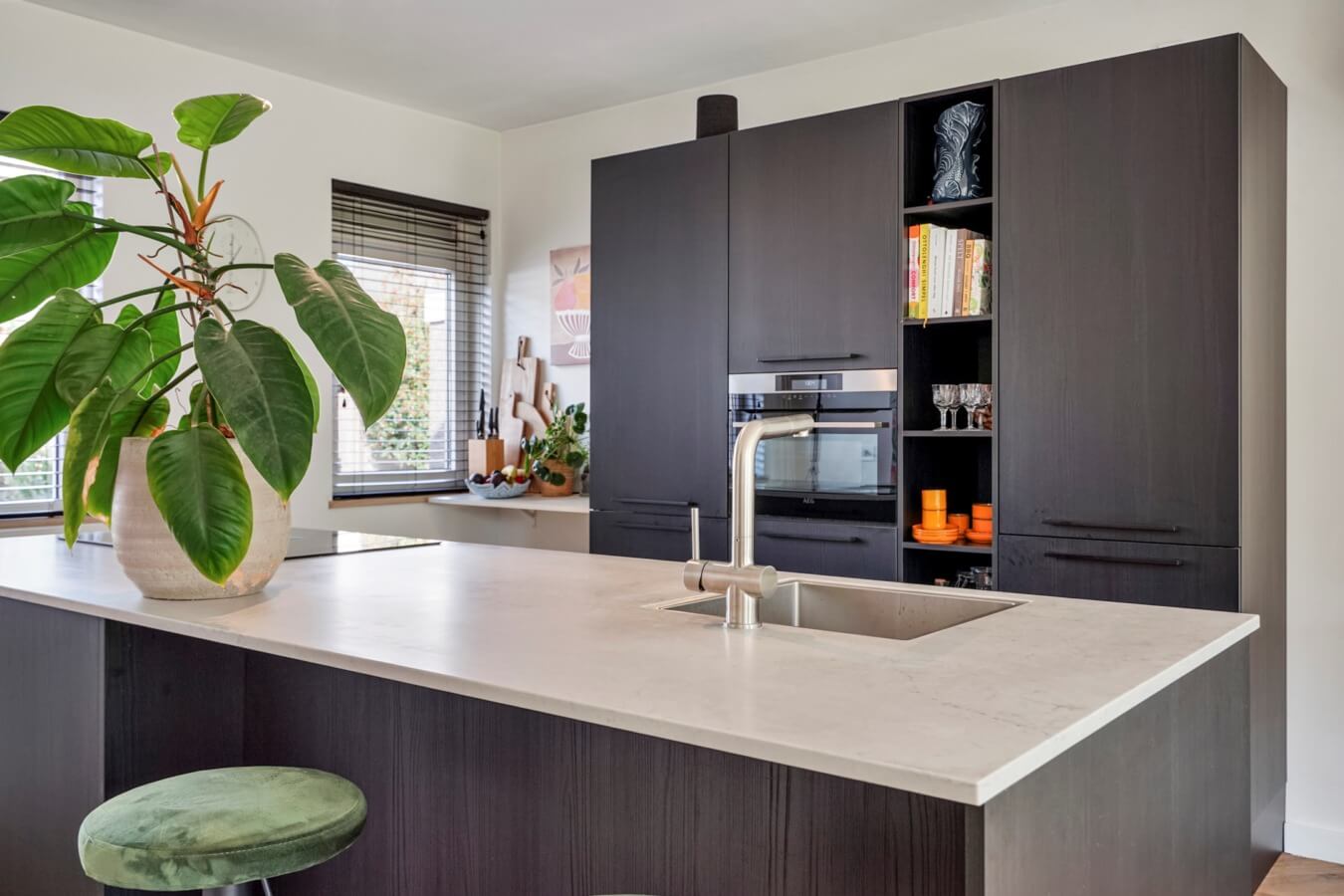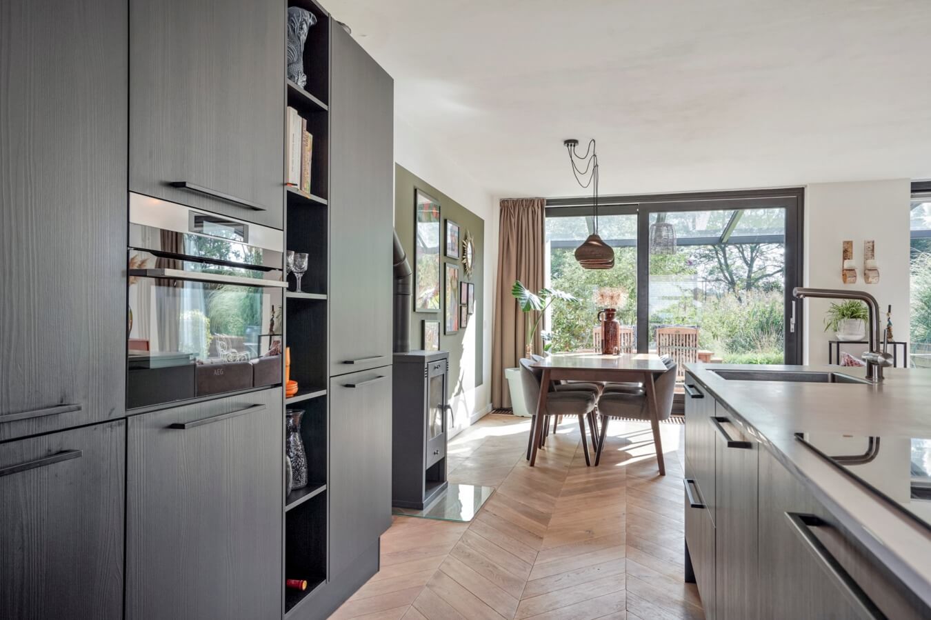 Direct bij binnenkomst in de woonkamer word je omarmd door een gevoel van luxueus woongenot. Van een stijlvolle uitstraling tot een aangename hoeveelheid lichtinval en van geweldige details tot hoogwaardige afwerkingen; zowel het zitgedeelte als het eetgedeelte is tot in de puntjes uitgevoerd. Voor dat urenlange tafelen hebben we overigens nog iets anders nodig. Een keuken bijvoorbeeld.