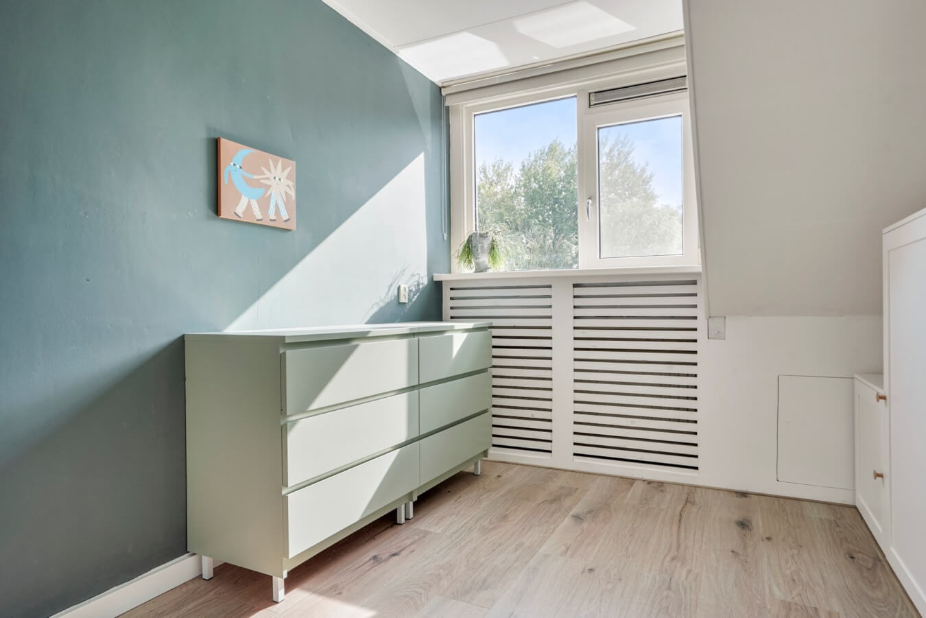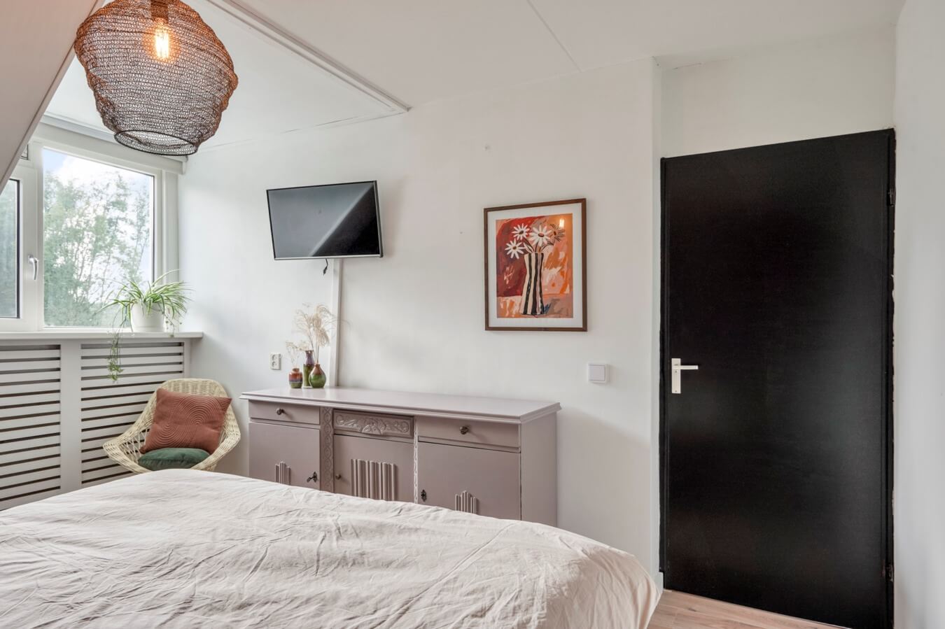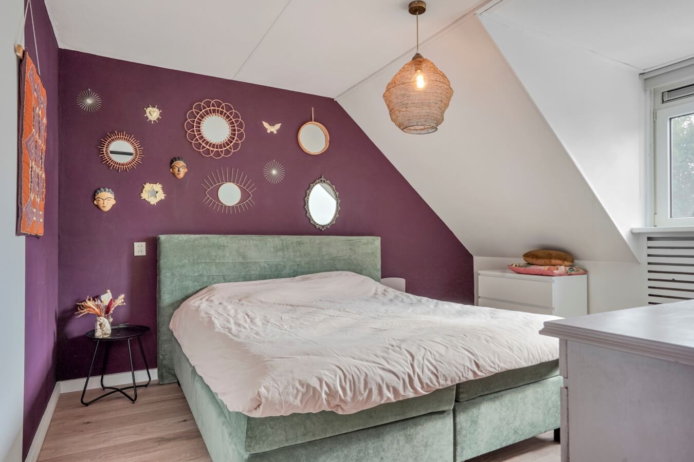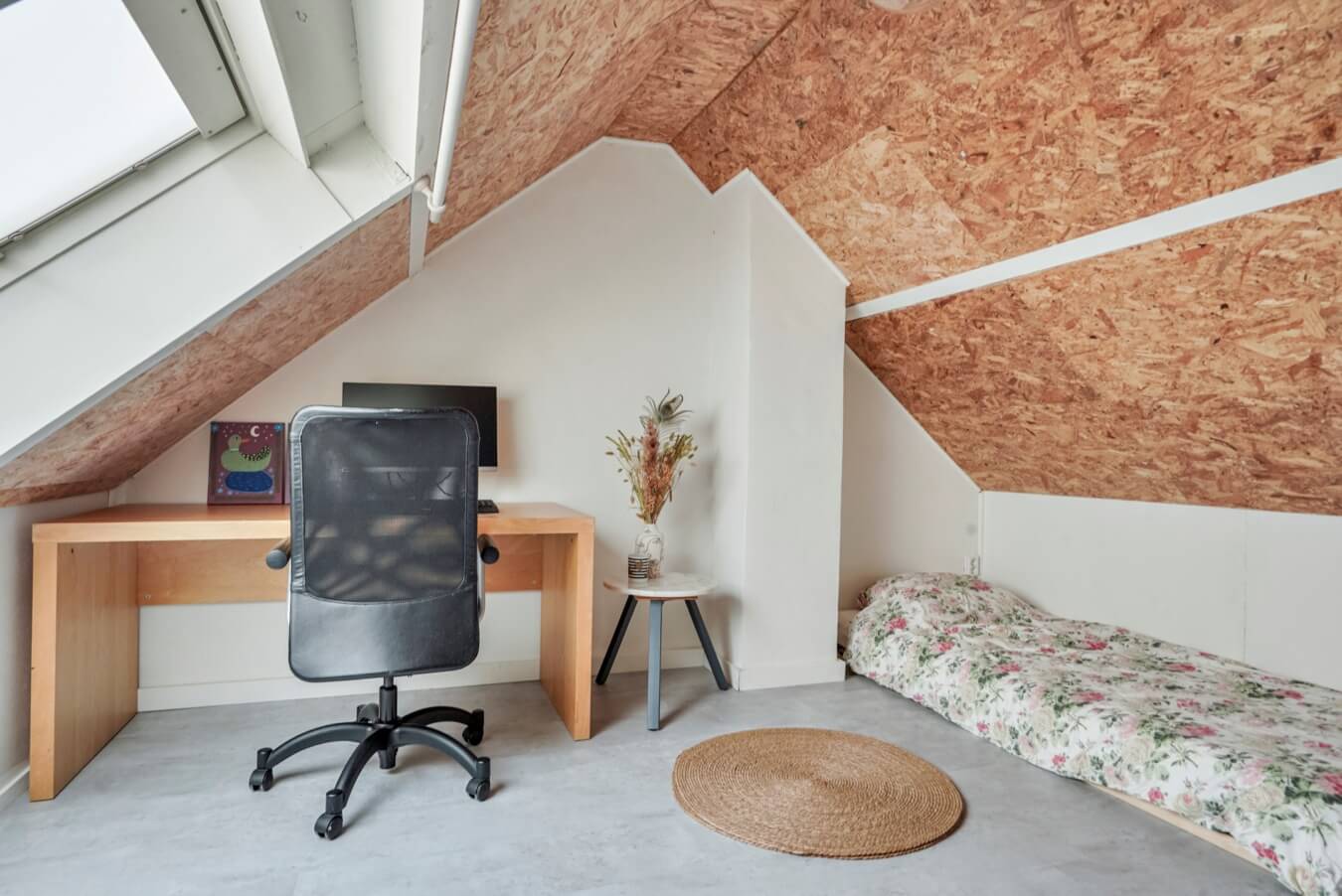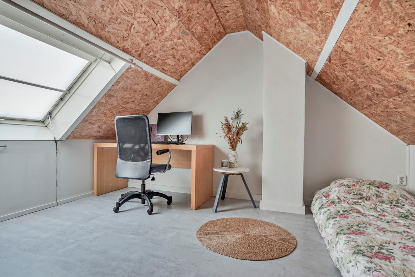 De overloop biedt daarnaast toegang tot de vierde en laatste slaapkamer. Hier bevindt zich namelijk nog een sfeervolle kamer onder het schuine dak, die over alle elementen beschikt voor een heerlijke nachtrust. Of ga jij toch voor een hobbyzolder of mancave?