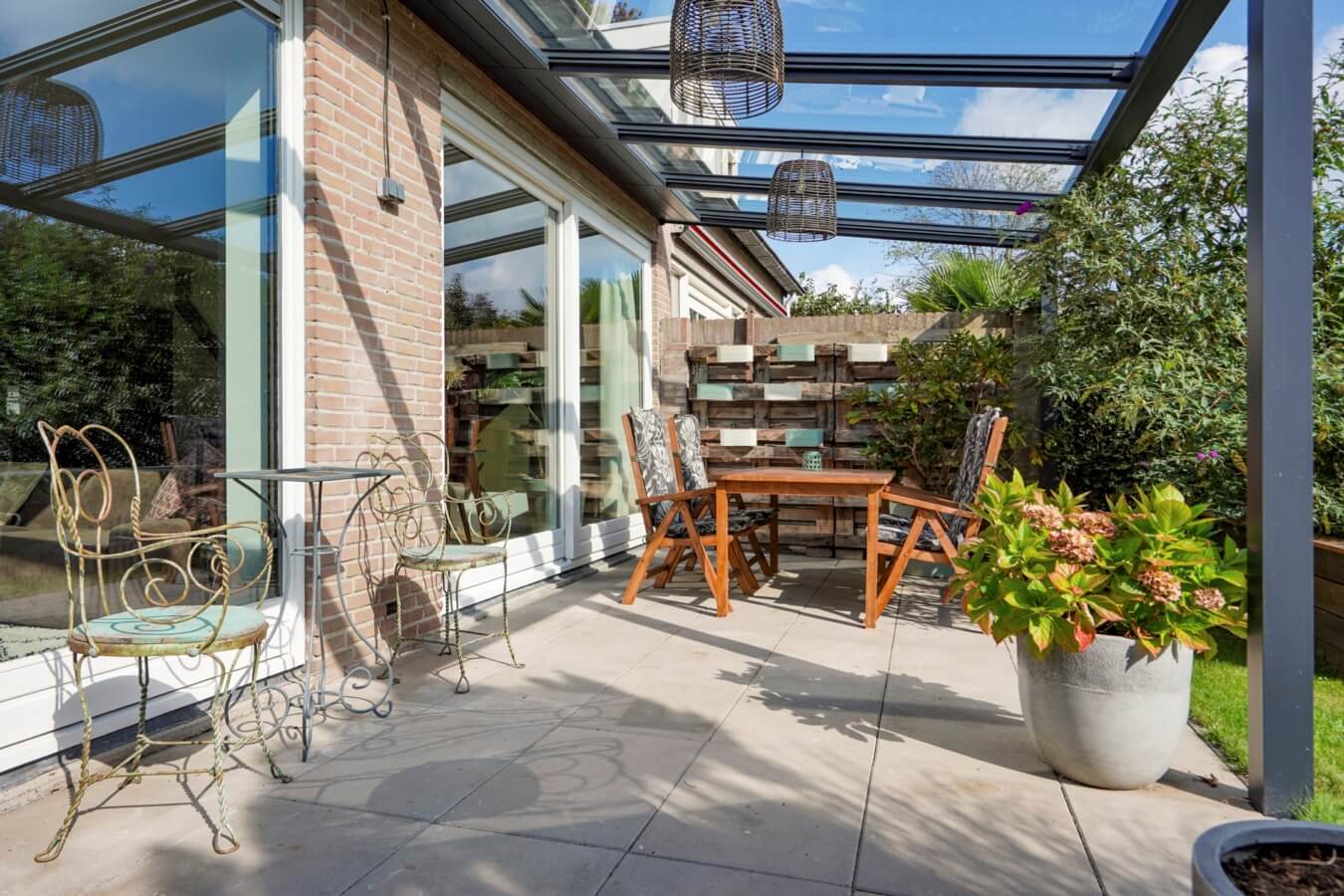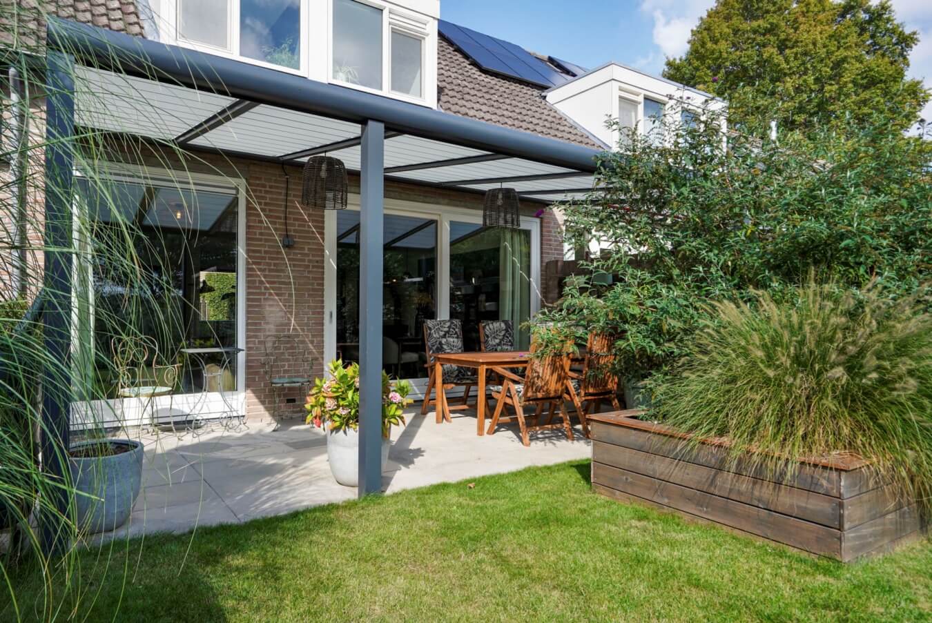 – Royale tuin met overkapping;