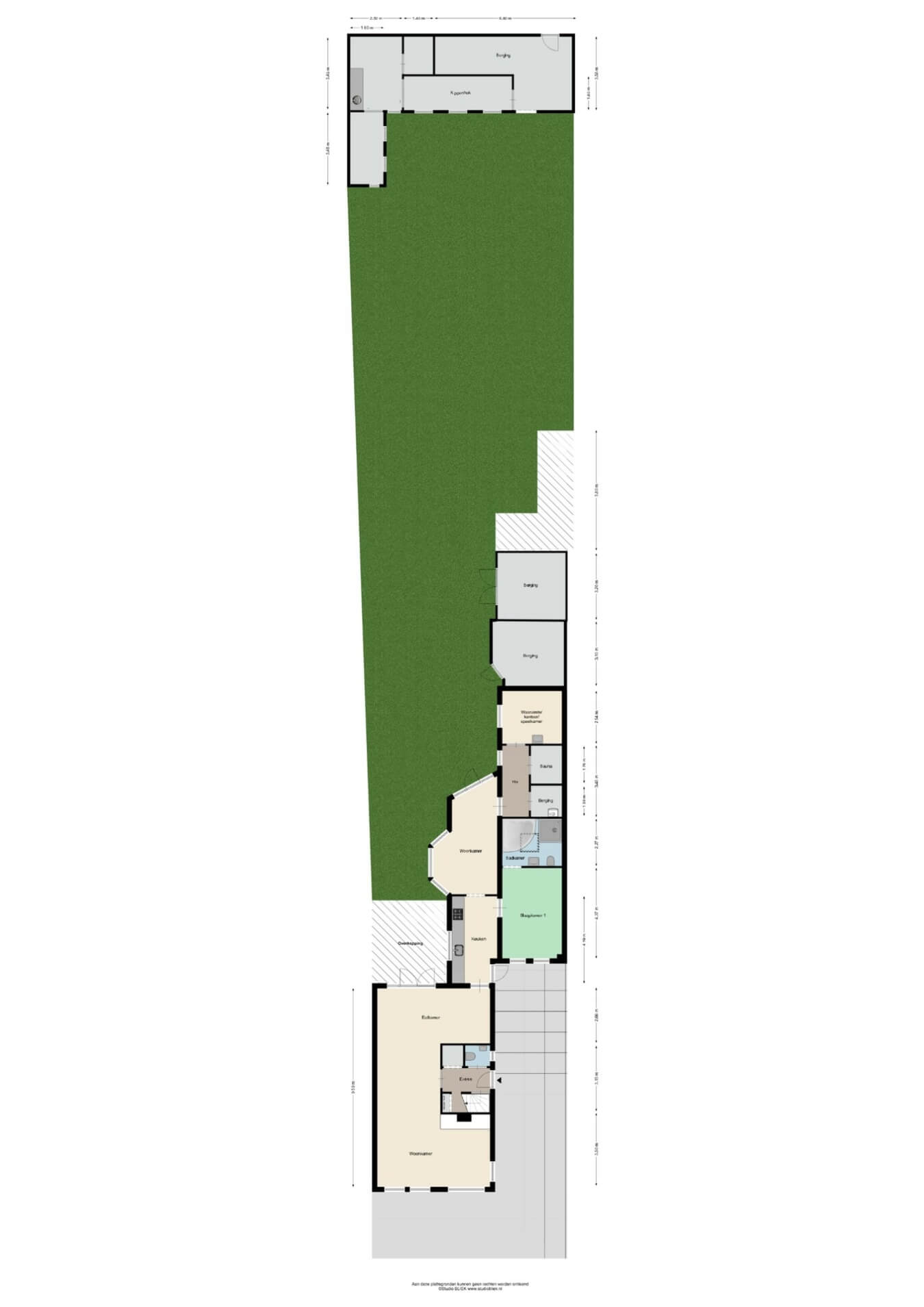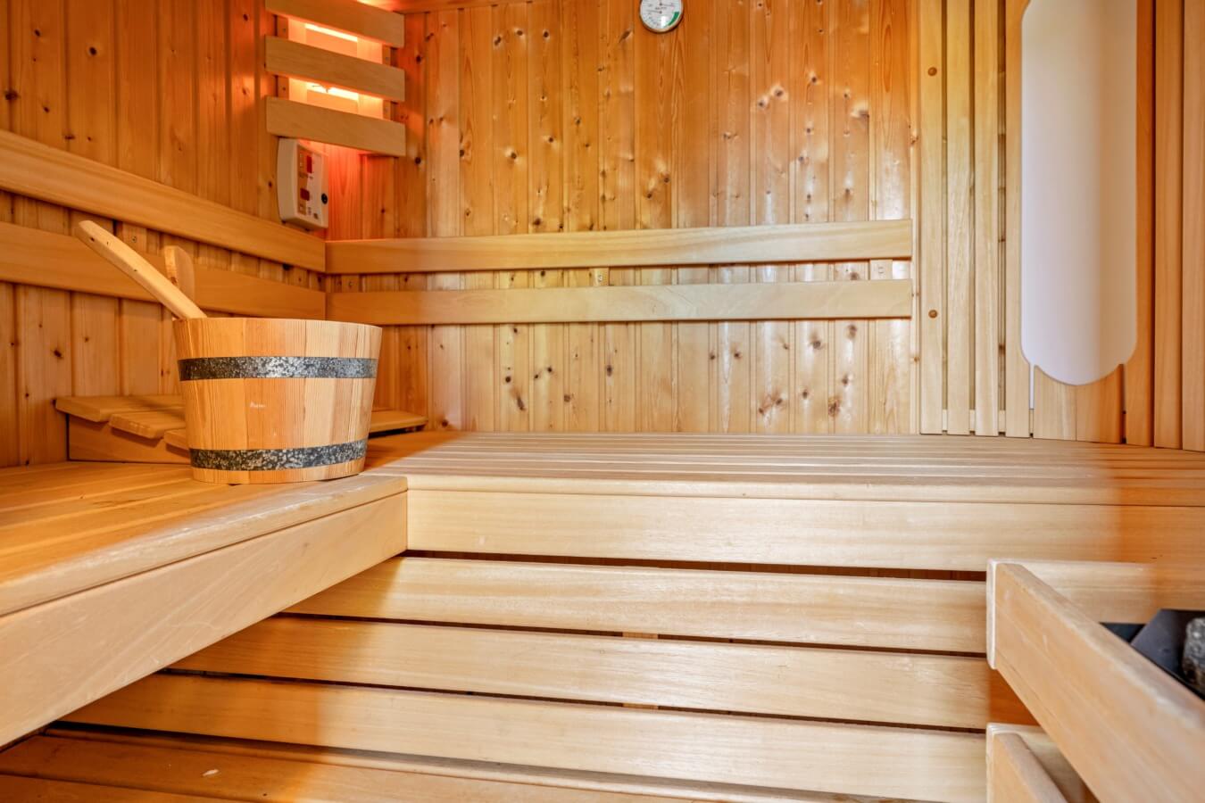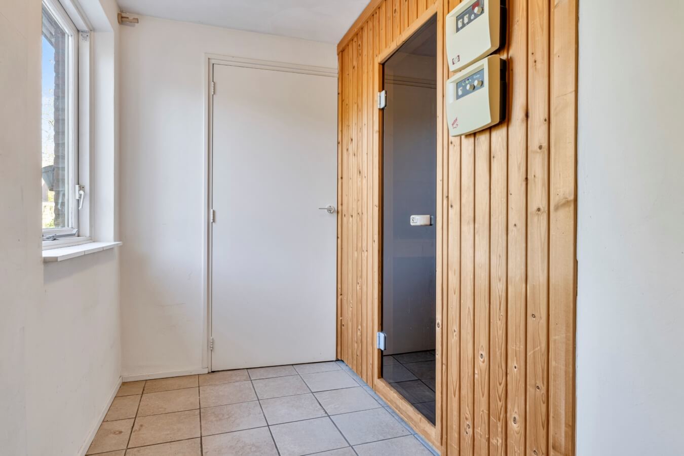 Eén extra kantoor/speelruimte is vanuit de hal te bereiken naast een berging en een sauna.