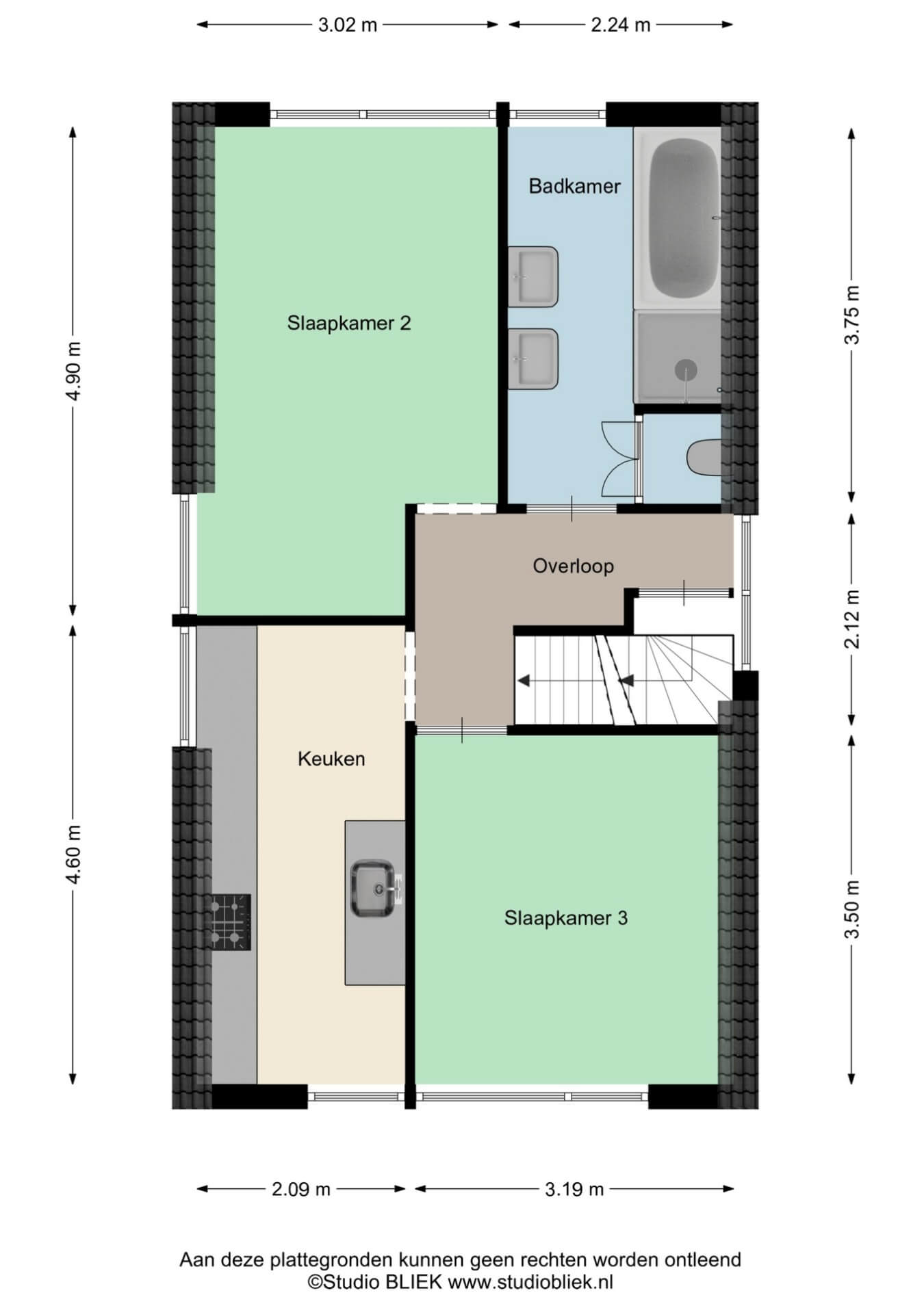 Hier vindt je momenteel twee slaapkamers, een keuken en een badkamer. Hierdoor heb je volop mogelijkheden op deze verdieping. Denk aan een eigen woonlaag voor kinderen, een inwonende ouder, gastenverblijf of zelfs werken aan huis. Liever vier slaapkamers? Dan haal je gewoon de badkamer en keuken eruit.