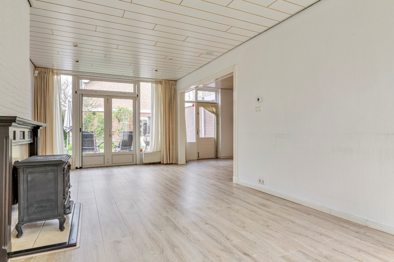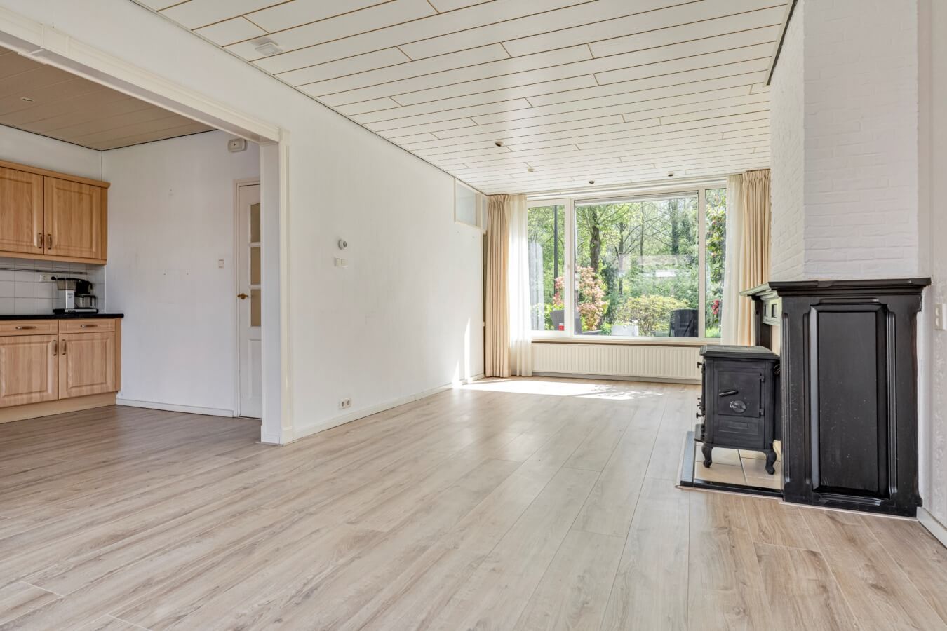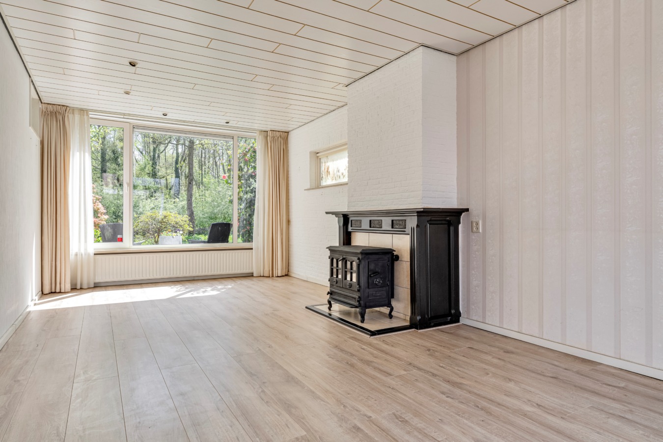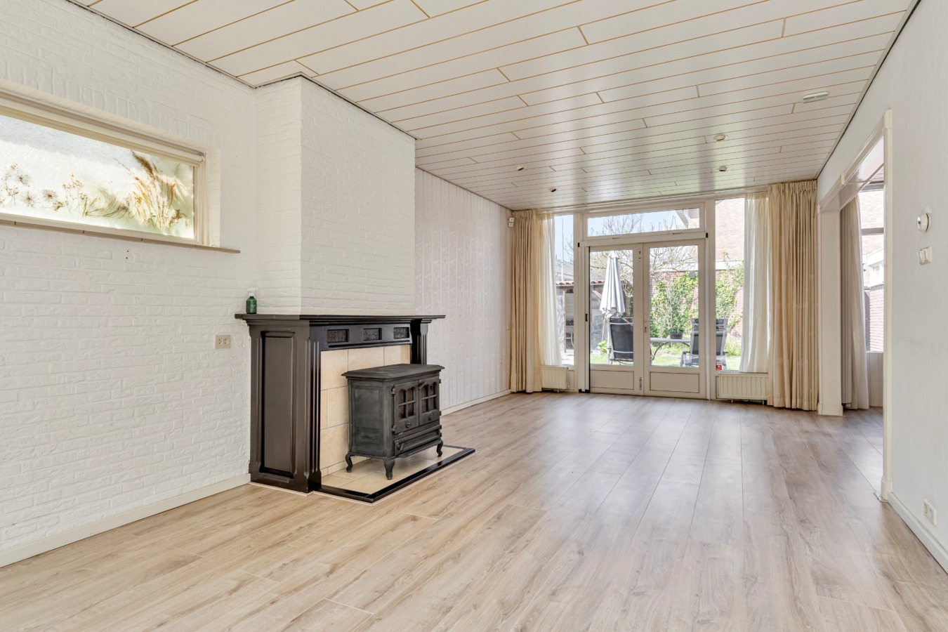 De woonkamer: Wat direct opvalt, is de enorme hoeveelheid natuurlijk licht door de grote raampartijen. Aan de voorzijde geniet je van een schitterend, rustgevend uitzicht op het water en de natuur. De houtkachel zorgt voor een karakteristiek accent en een warme sfeer. Via de openslaande tuindeuren aan de achterzijde betrek je op zonnige dagen de tuin direct bij je woonkamer.
