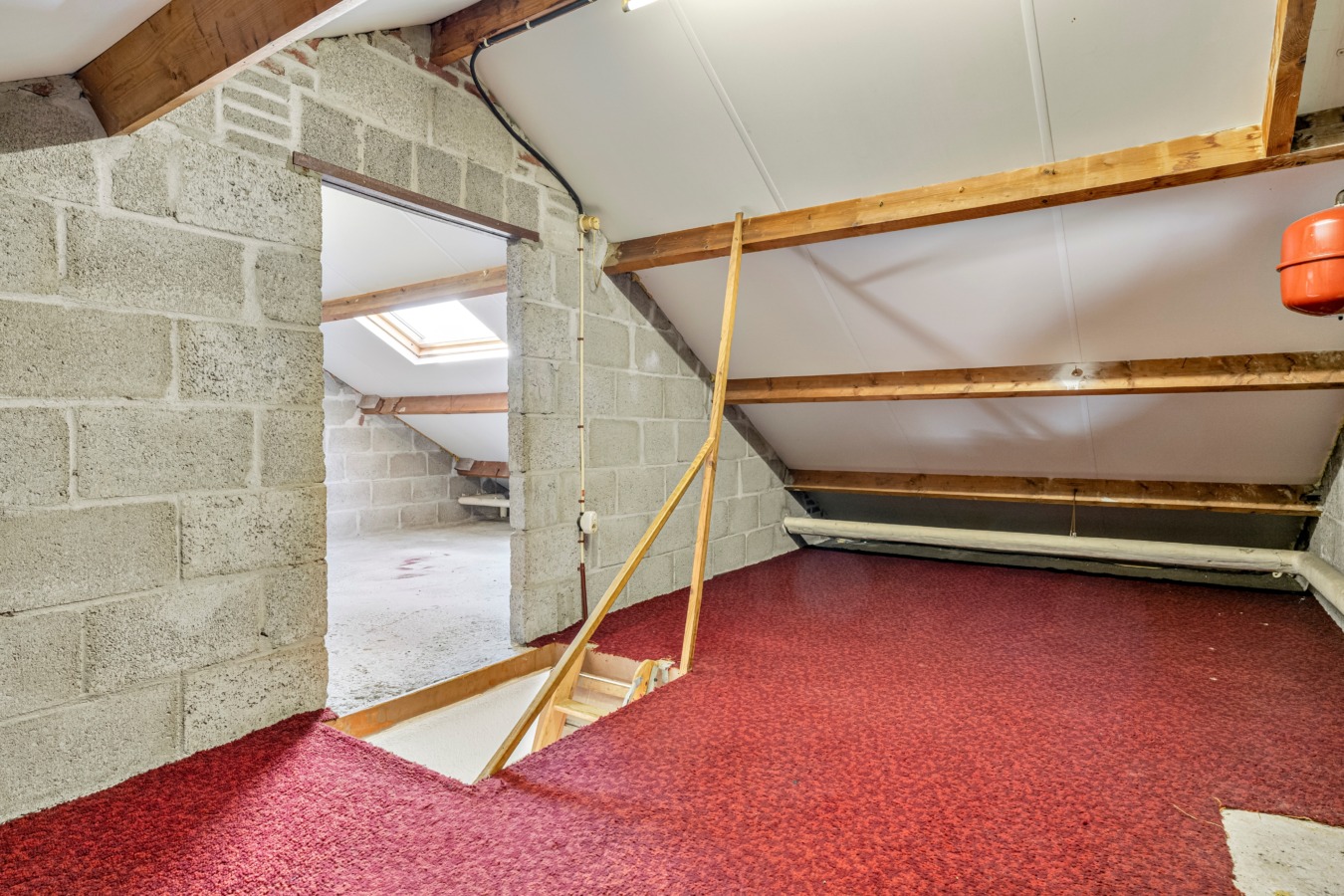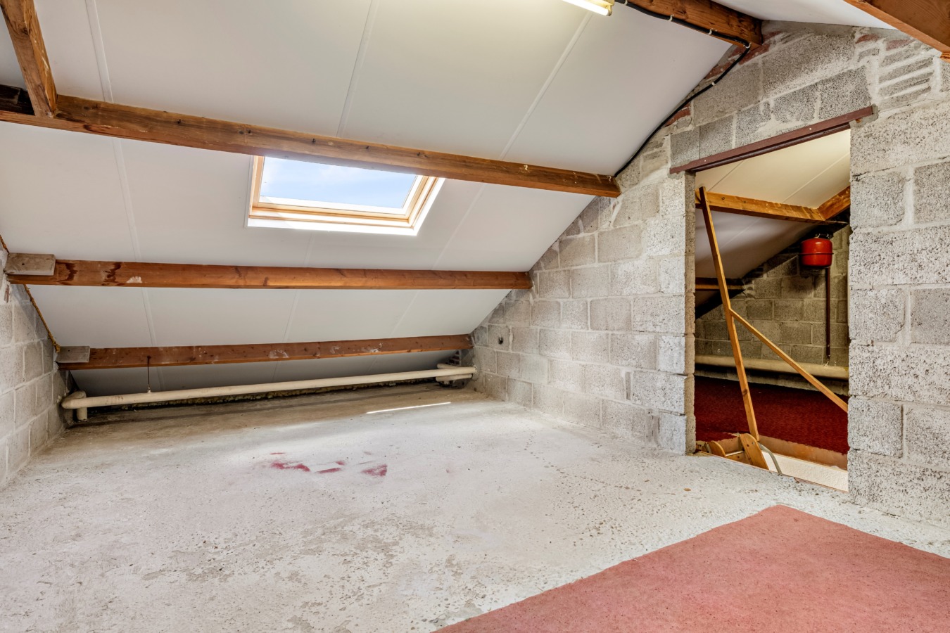 Middels een vlizotrap bereik je de bergzolder met de opstelling voor de cv-ketel. De zolder biedt nu al veel bergruimte, maar de potentie is groter. Door het plaatsen van een vaste trap en een dakkapel kun je hier eenvoudig een of meerdere volwaardige slaapkamers realiseren.