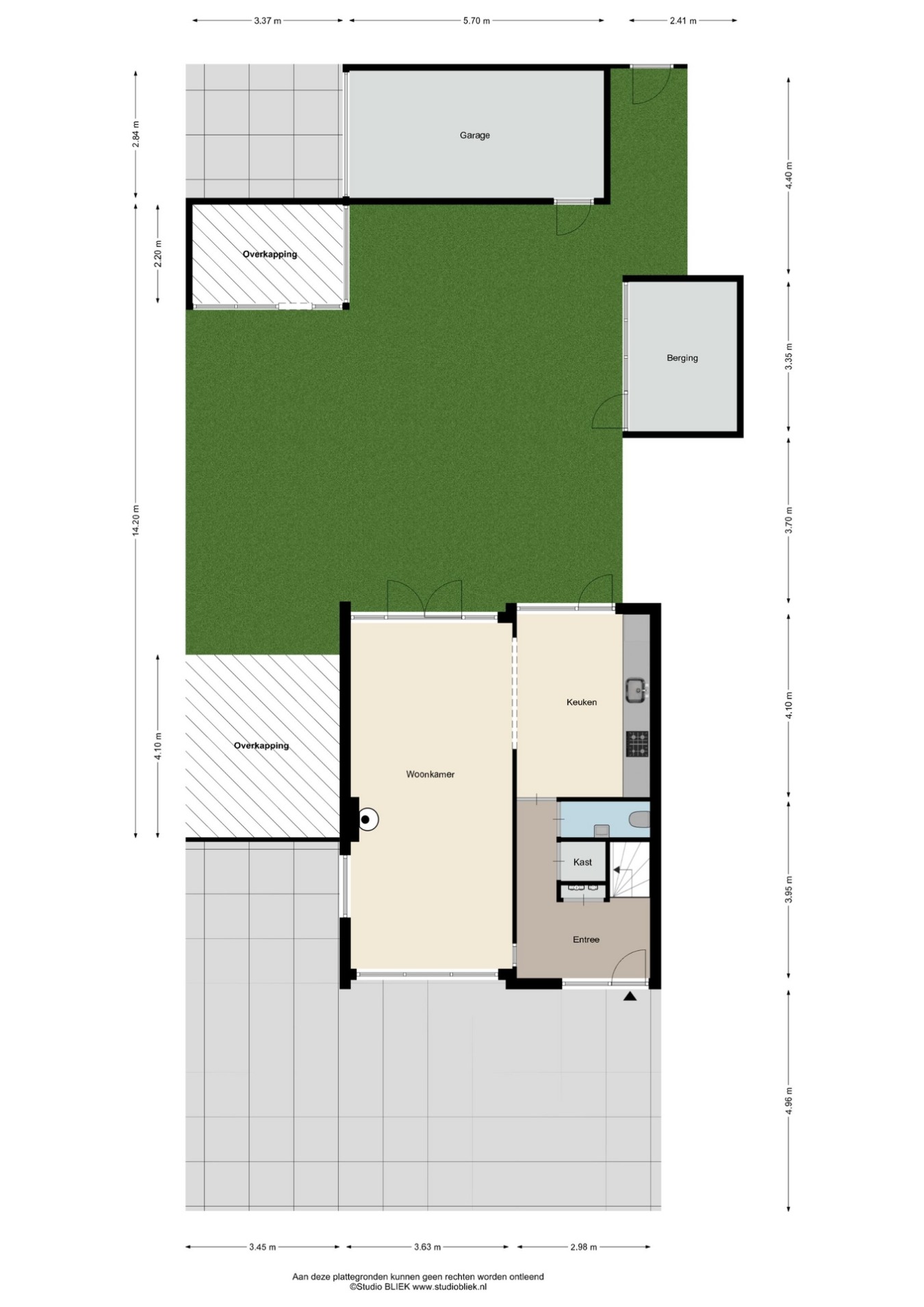 • Tuin: Diepe achtertuin op het zuidoosten met overkapping, berging en garage.