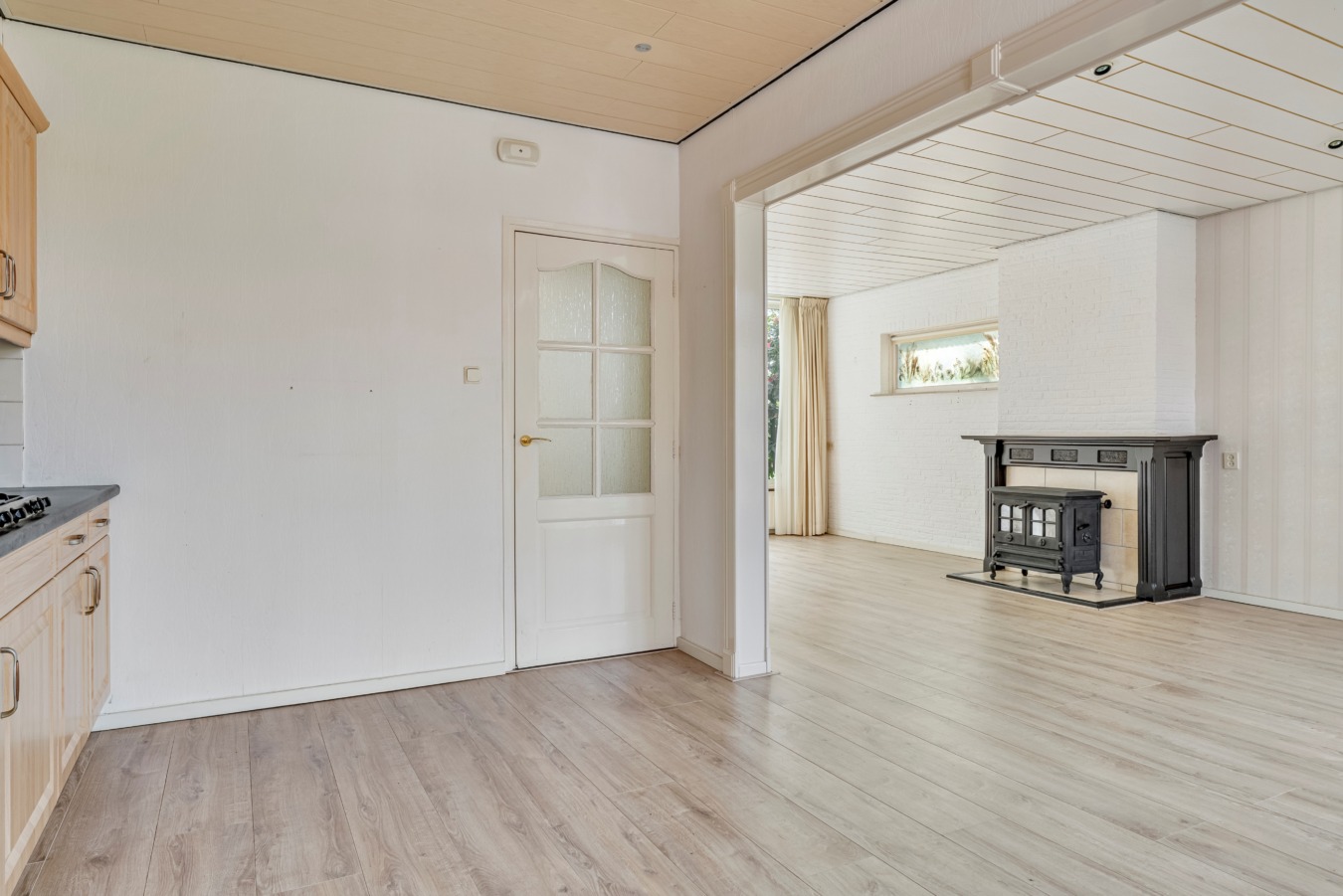 De keuken: De open keuken is degelijk en gebruiksklaar, kan een moderne upgrade gebruiken, maar de ruimte is perfect. Zie je het al voor je? Een kookeiland of een riante hoekopstelling waar je de sterren van de hemel kookt, terwijl je gasten alvast aan de grote eettafel aanschuiven.