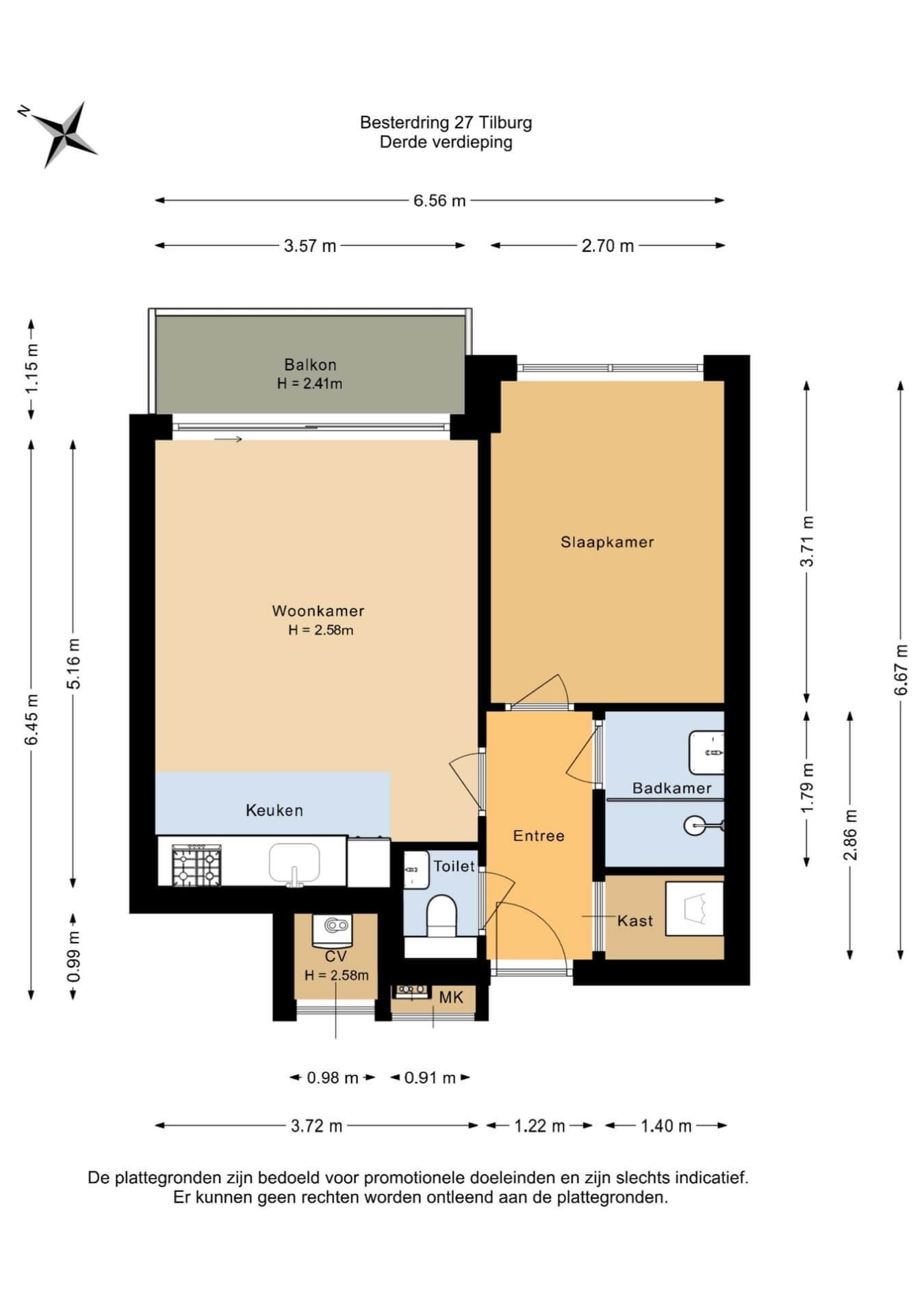 De meterkast en een extra berging met de HR cv-ketel vind je net buiten het appartement naast de voordeur.