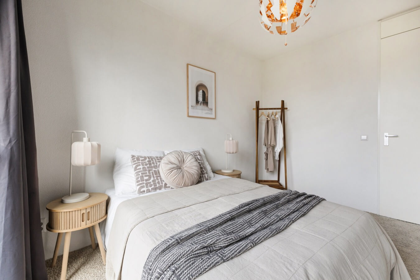 Als je in de slaapkamer aan de rechter achterzijde geen goede nachtrust krijgt, dan weten wij het ook niet meer. De ruimte voor alle gewenste meubels, de keurige afwerkingen en de aangename hoeveelheid lichtinval, maken deze kamer dan ook uitermate geschikt als master bedroom.