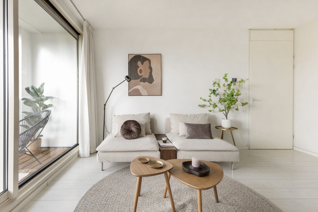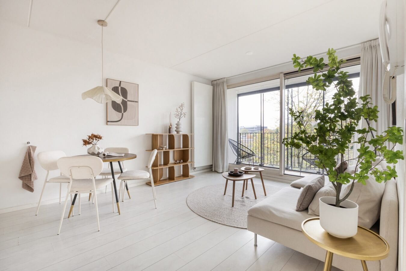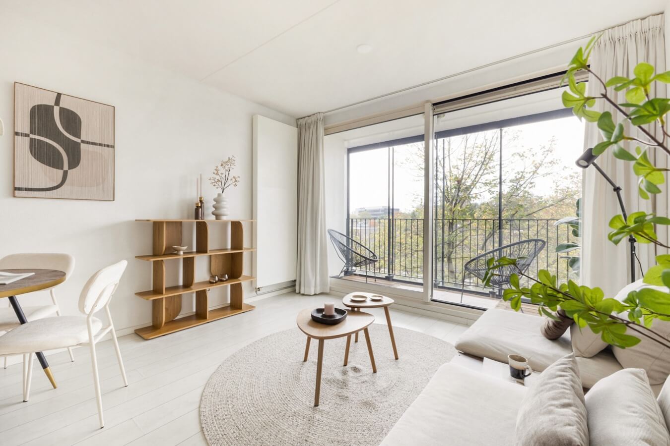 De woonkamer biedt daarnaast toegang tot een groot, zonnig en fijn balkon, waar je heerlijk kan genieten van de zon, het uitzicht en elkaar. Geniet!