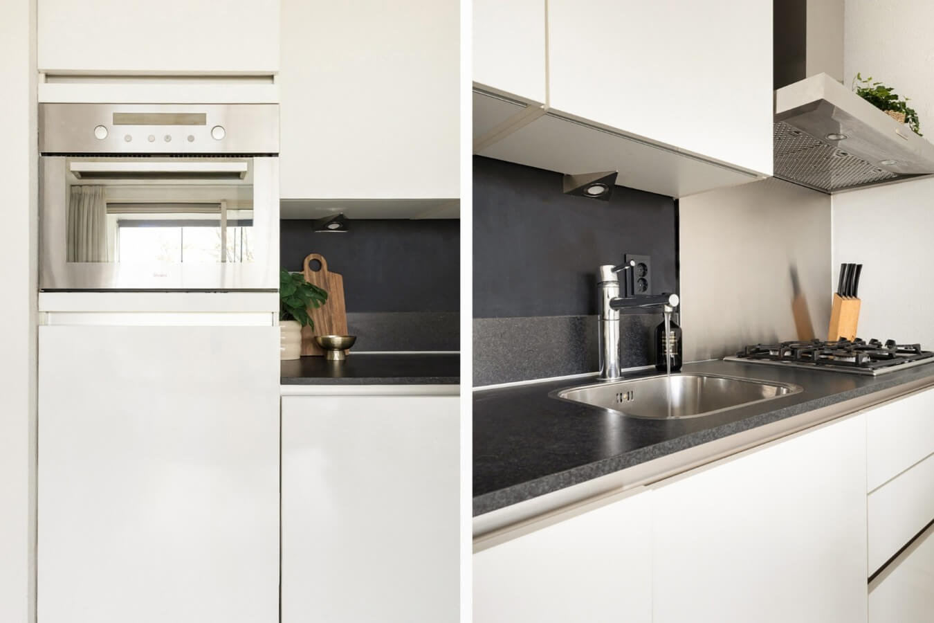 Daarnaast ontdek je hier de open keuken aan een zijde van de living, waar je over een 4-pits gaskookplaat, afzuigkap, koelkast, combimagnetron en vaatwasser beschikt.