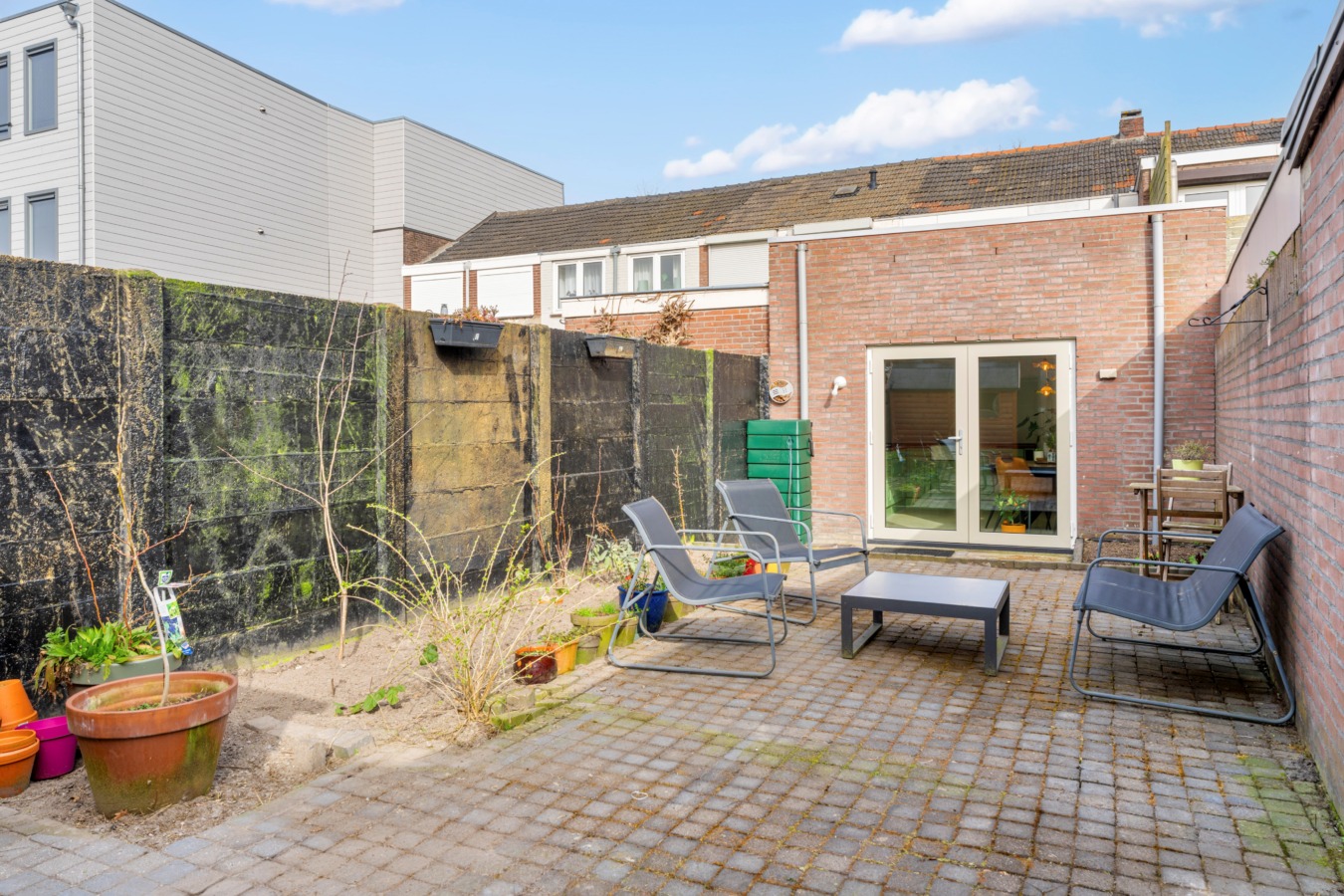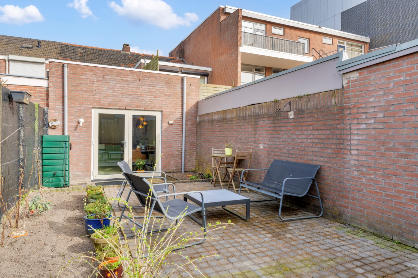 Ondanks de uitbouw beschikt de woning over een verrassend diepe achtertuin van meer dan 10 meter. De tuin ligt op het zonnige zuidwesten, waardoor je hier volop van de zon kunt genieten. Door de grotendeels bestrate inrichting is de tuin onderhoudsvriendelijk en biedt hij voldoende ruimte voor een loungeset en een gezellige eettafel.
