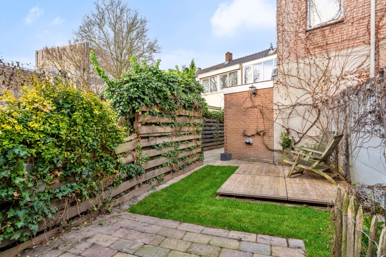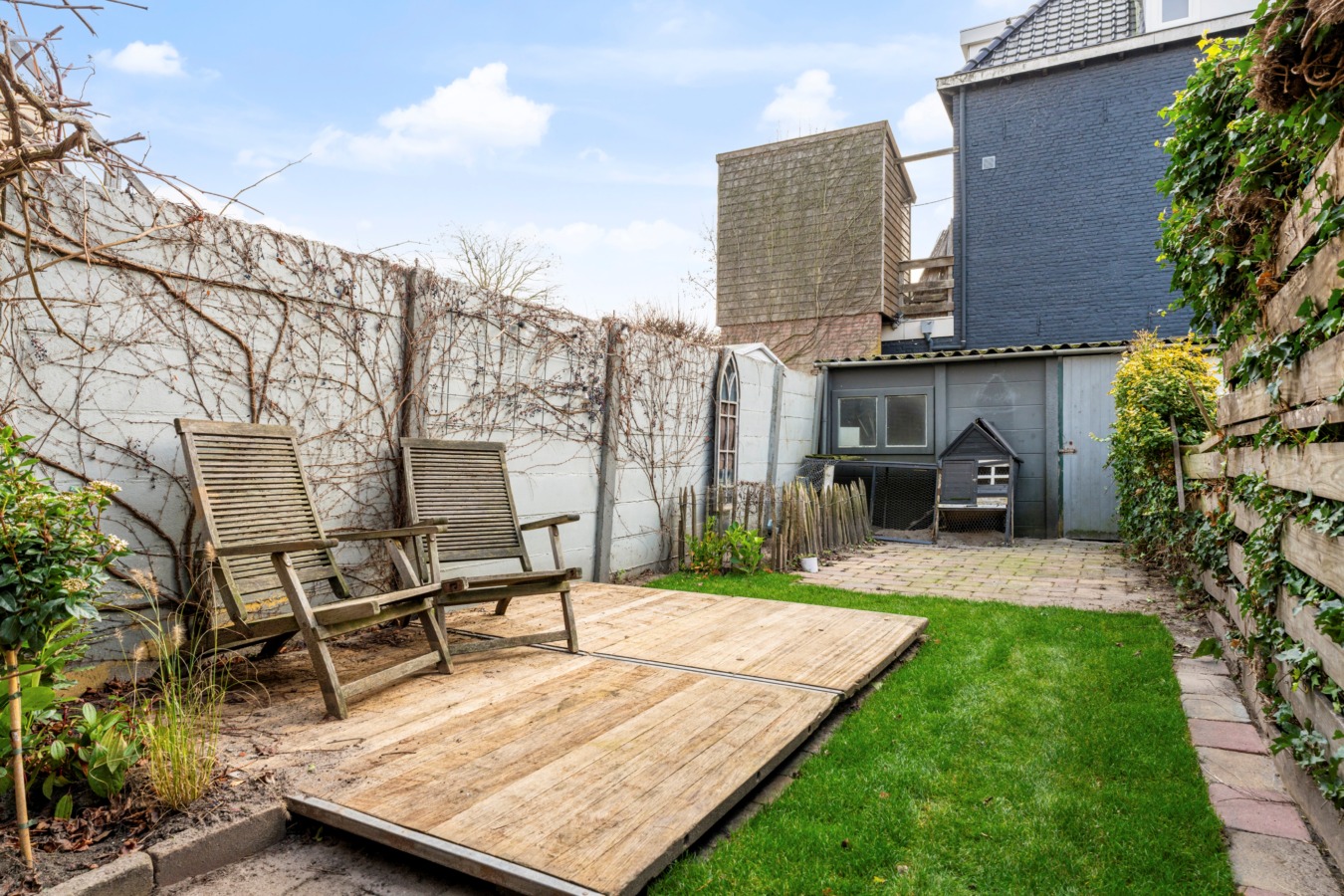 De verrassend fijne stadstuin ligt perfect op het zuiden, waardoor je de hele dag door van de zon kunt genieten. De tuin is deels betegeld en deels ingericht met gras en vaste beplanting. Achterin bevindt zich een kippenren met bewoner, die in overleg ter adoptie kan worden aangeboden. Dankzij de achterom is de tuin ook via buiten bereikbaar. Daarnaast is er een stenen berging voor fietsen en tuingereedschap.