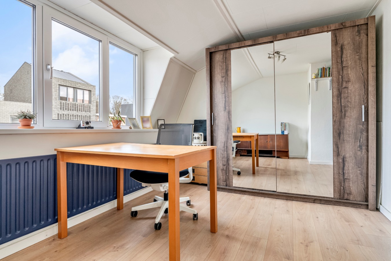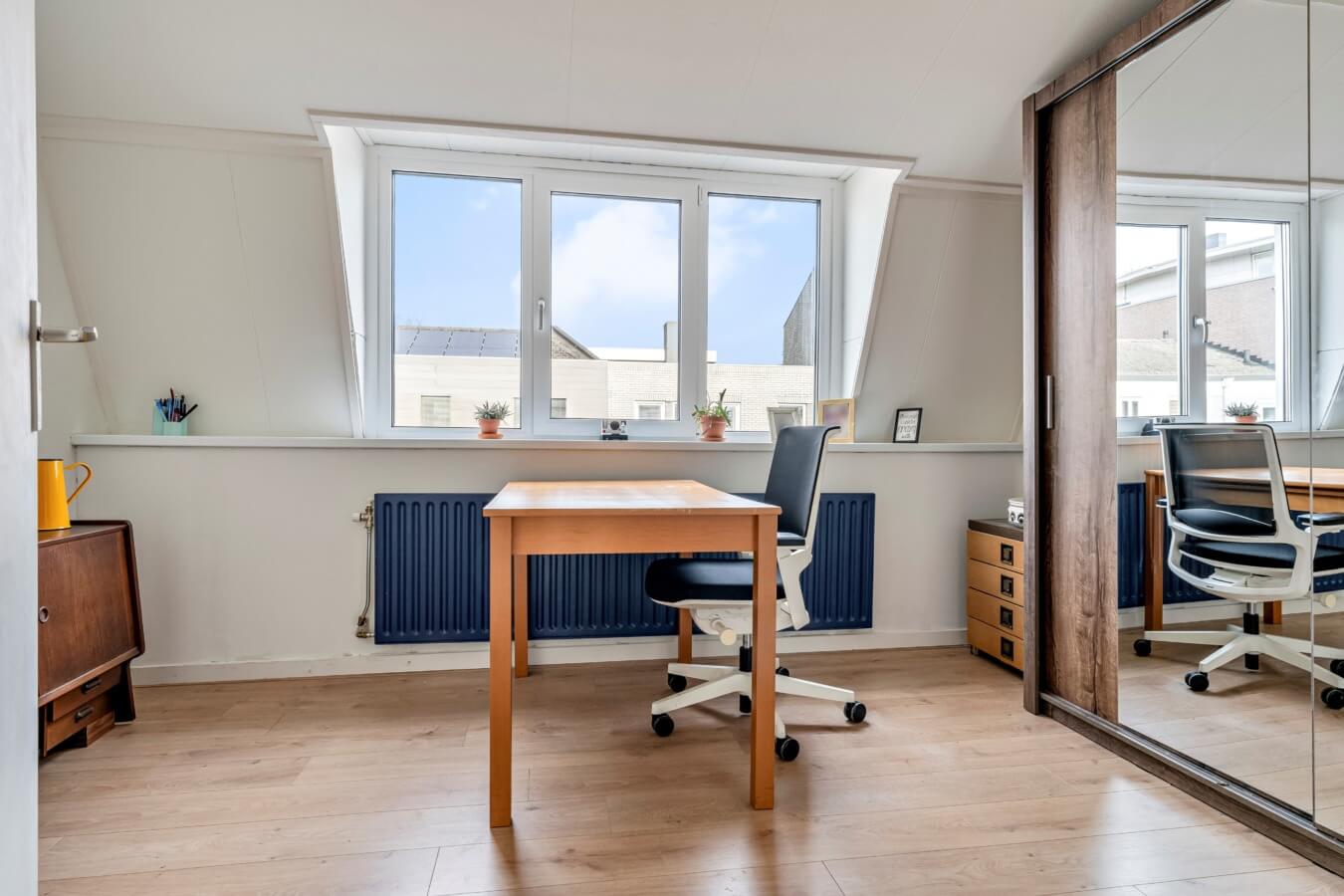 Op deze verdieping bevinden zich twee volwaardige slaapkamers, beide over de volledige breedte van de woning. De slaapkamer aan de voorzijde beschikt over een dakkapel, terwijl de slaapkamer aan de achterzijde dankzij de volledige uitbouw en brede raampartij heerlijk licht is.