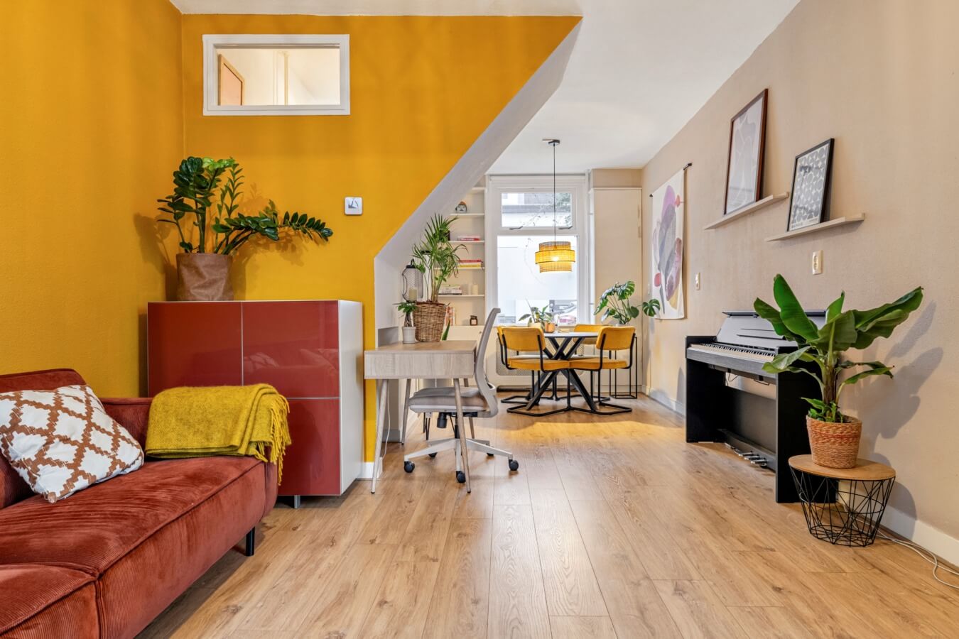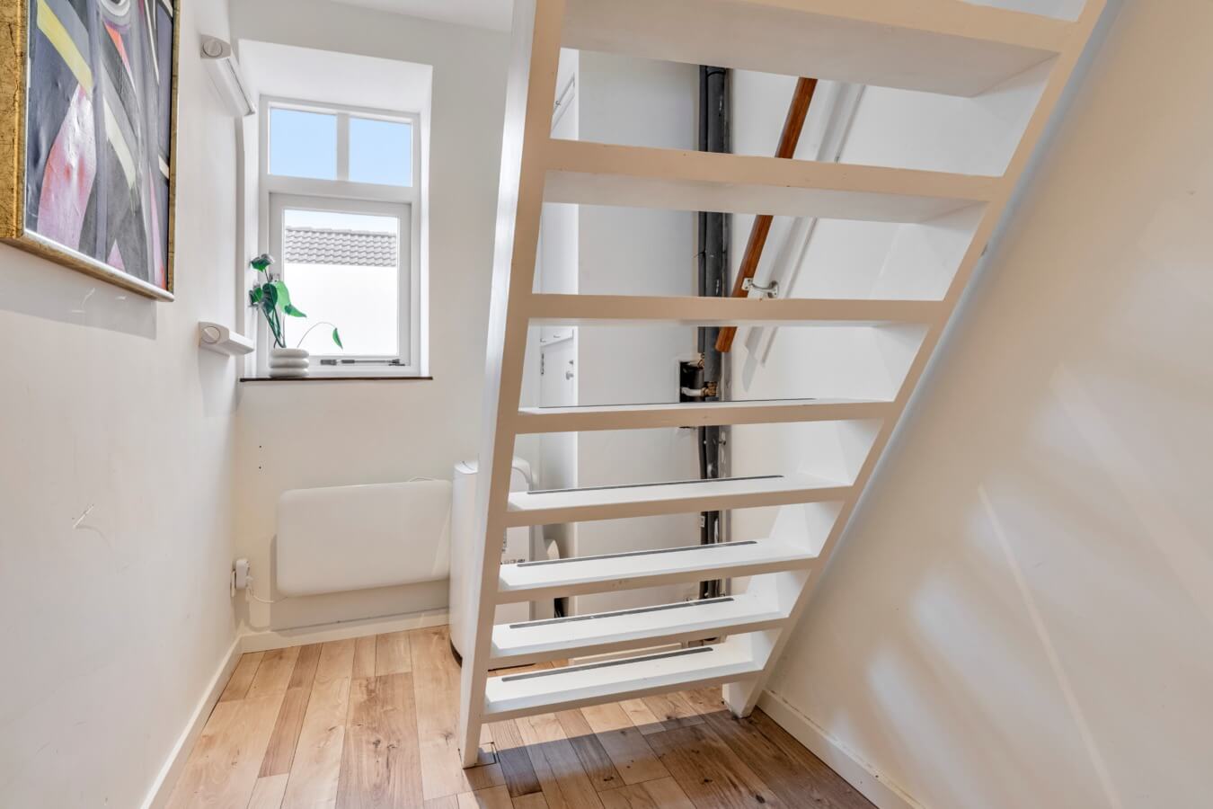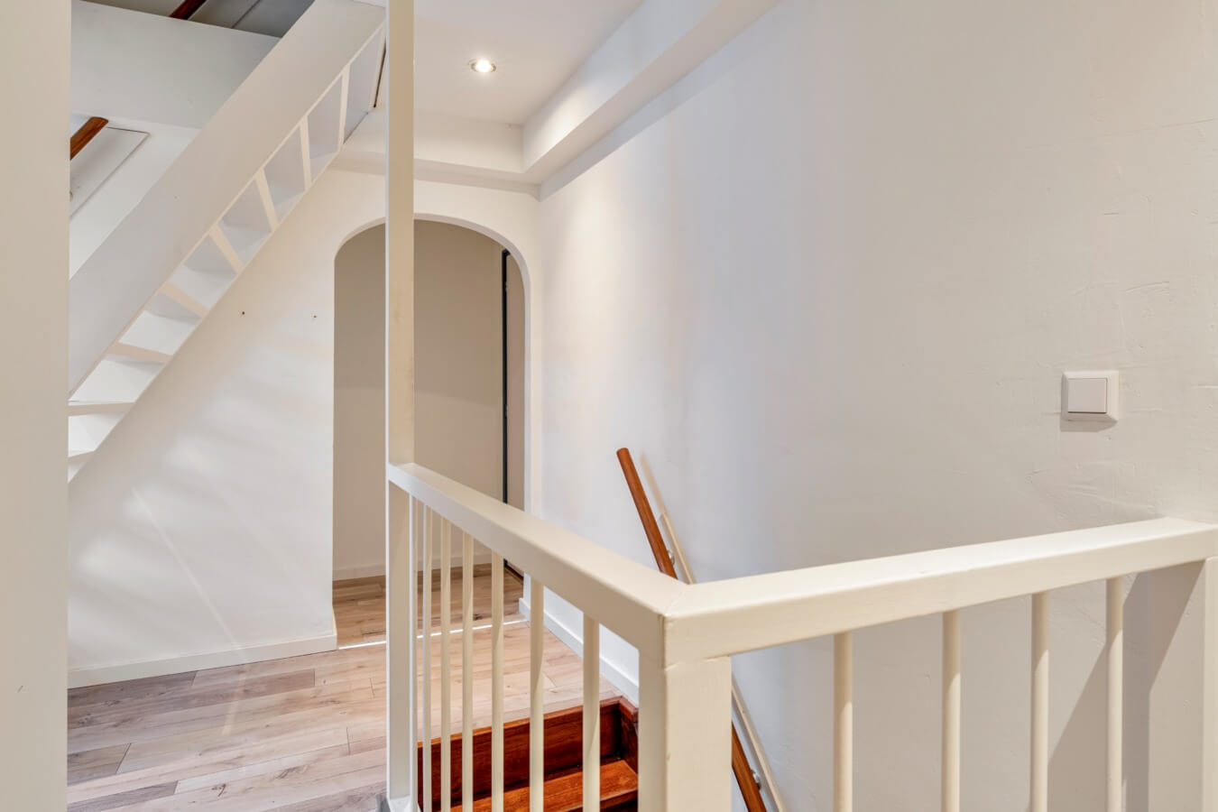Het karakteristieke exterieur verraadt al dat je een bijzondere woning gaat betreden. Welkom! In de hal vind je de trap naar boven en heb je toegang tot de woonkamer.
