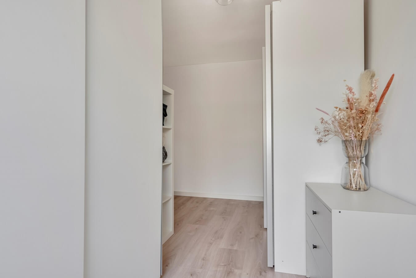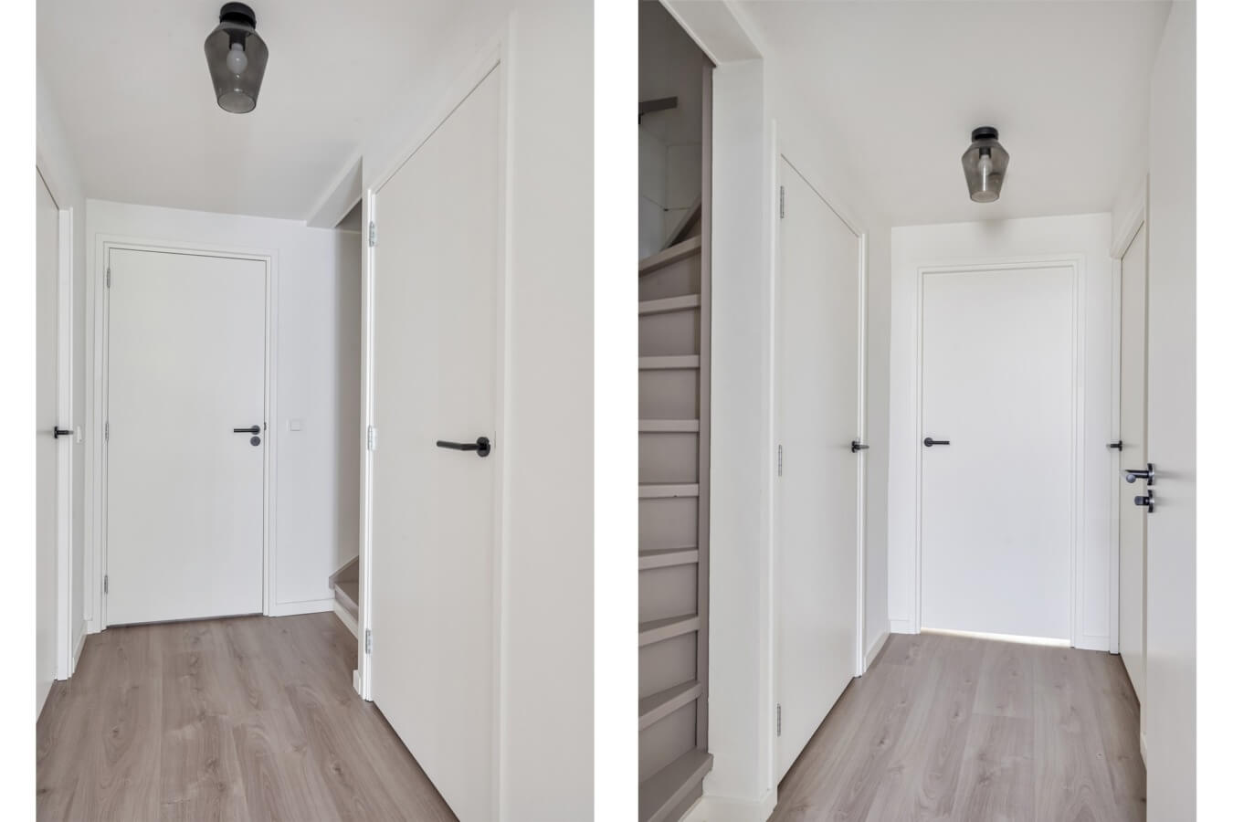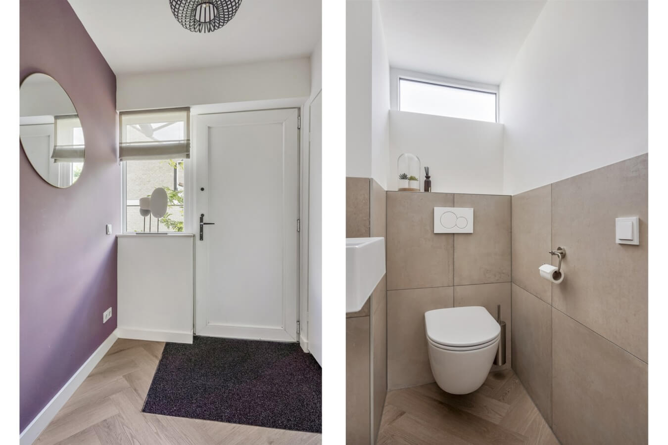 Wanneer je via de netjes aangelegde voortuin het huis binnenstapt, kom je binnen in de entree. De hal zet meteen de toon voor de rest van de woning, met haar strakke en frisse look en feel. Links ontdek je de meterkast en in de tweede hal verderop vind je de vernieuwde toiletruimte met hangend closet en fonteintje. Op naar het vertrek suprême.