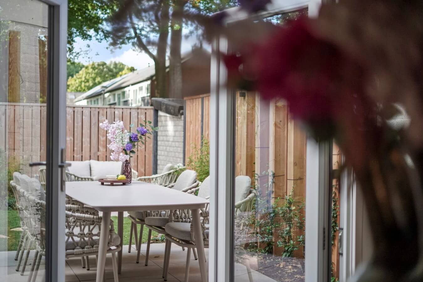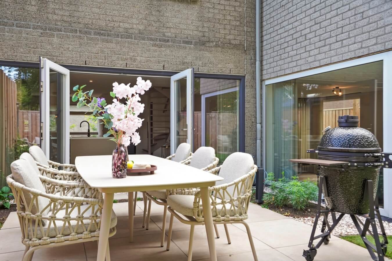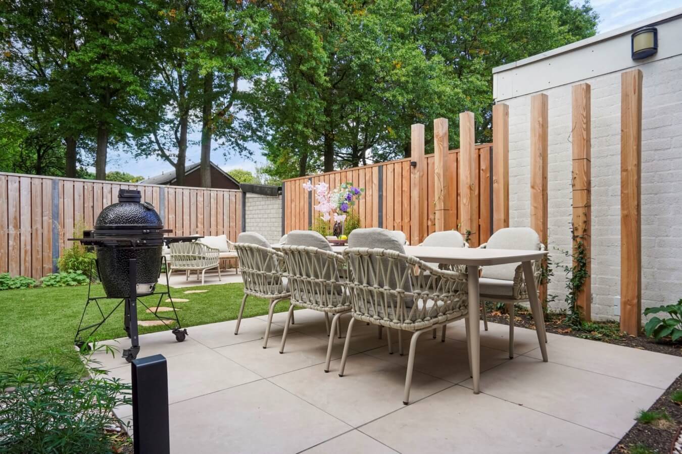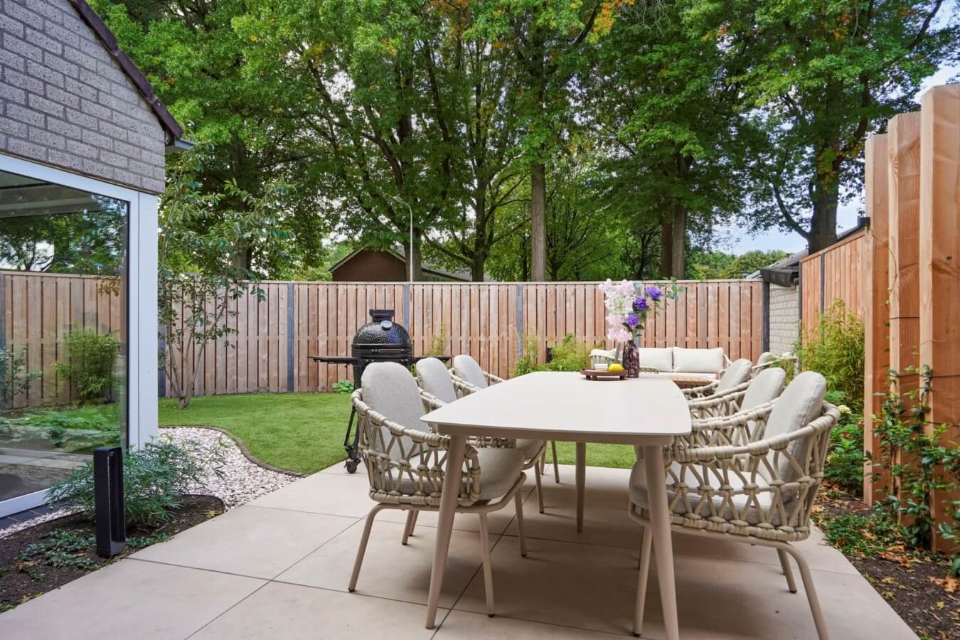 – Ruime, privacybiedende onder architectuur ontworpen achtertuin;