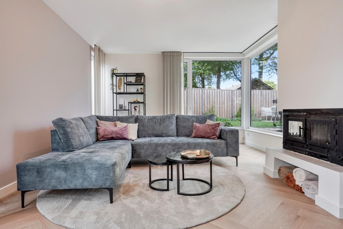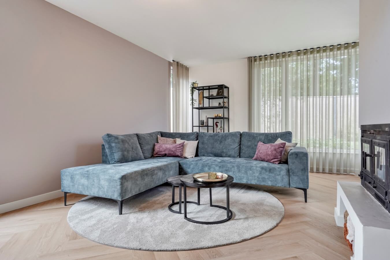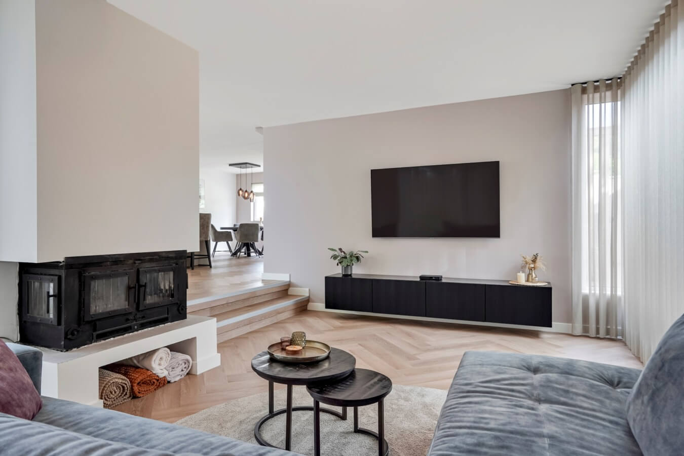 Houd dat wauw-gevoel nog maar even vast. We lopen vanuit hier namelijk twee treden naar beneden, om de prachtige zitkamer bij de grote haard te bewonderen. Ook hier is alles met oog voor detail en gevoel voor stijl benaderd. Plof lekker neer op de grote bank met een koffietje of goed glas wijn en geniet van de ontspanning die hier gegarandeerd is.
