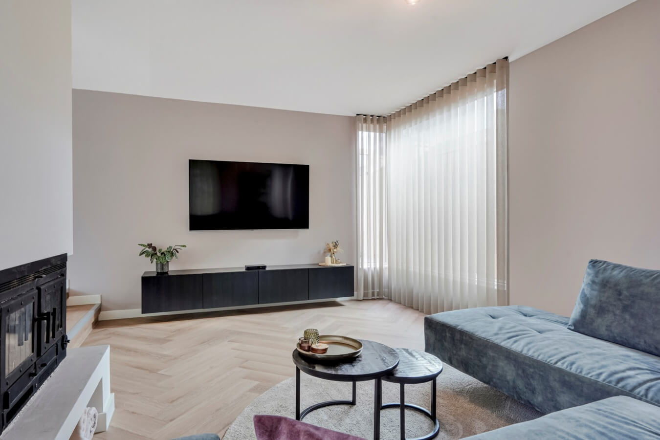 – Moderne en sfeervolle leefruimte met visgraatvloer;