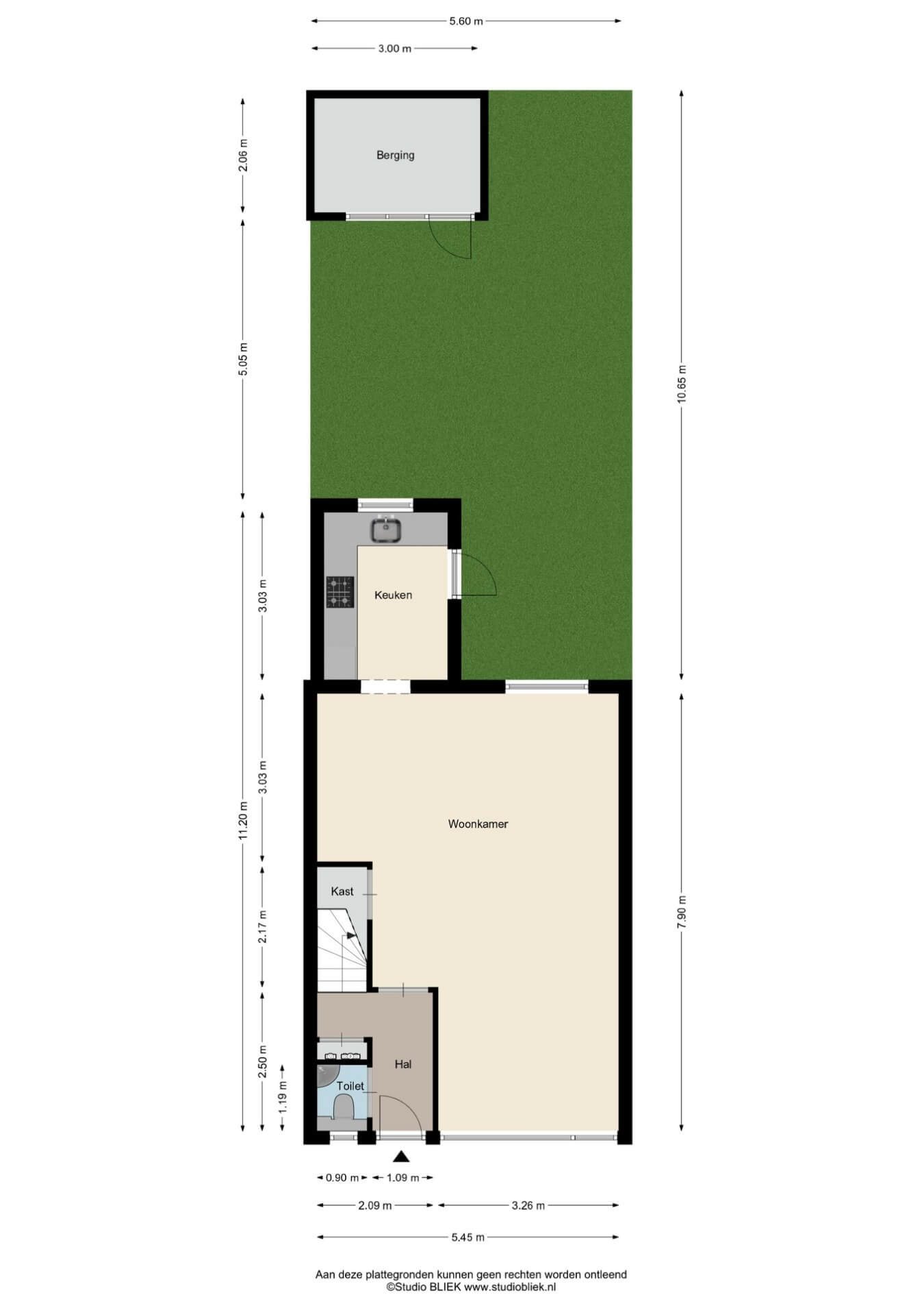 • Zonnige tuin op het zuiden met stenen berging en achterom;