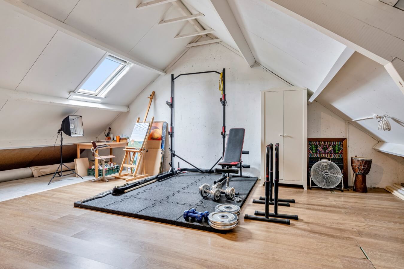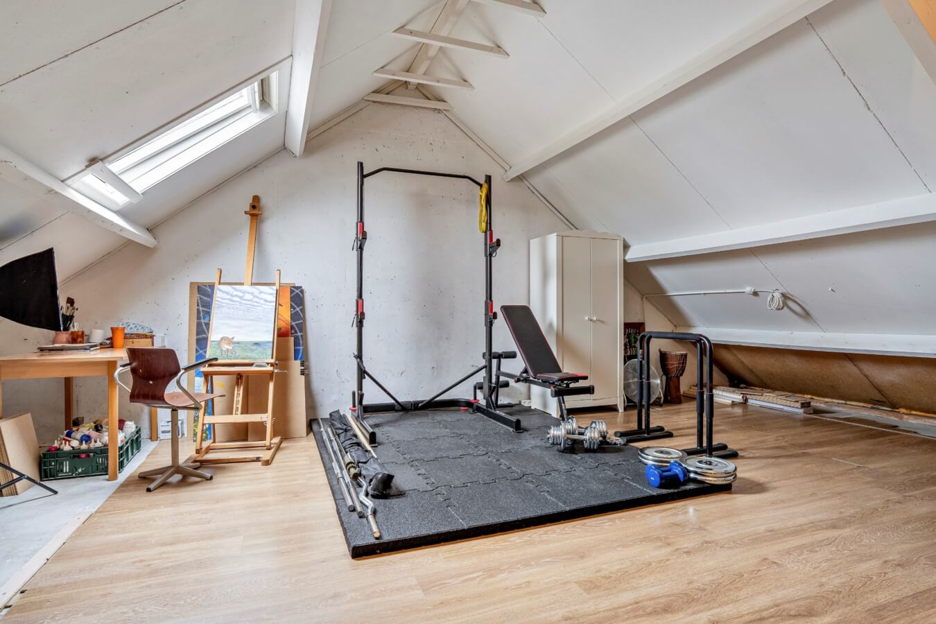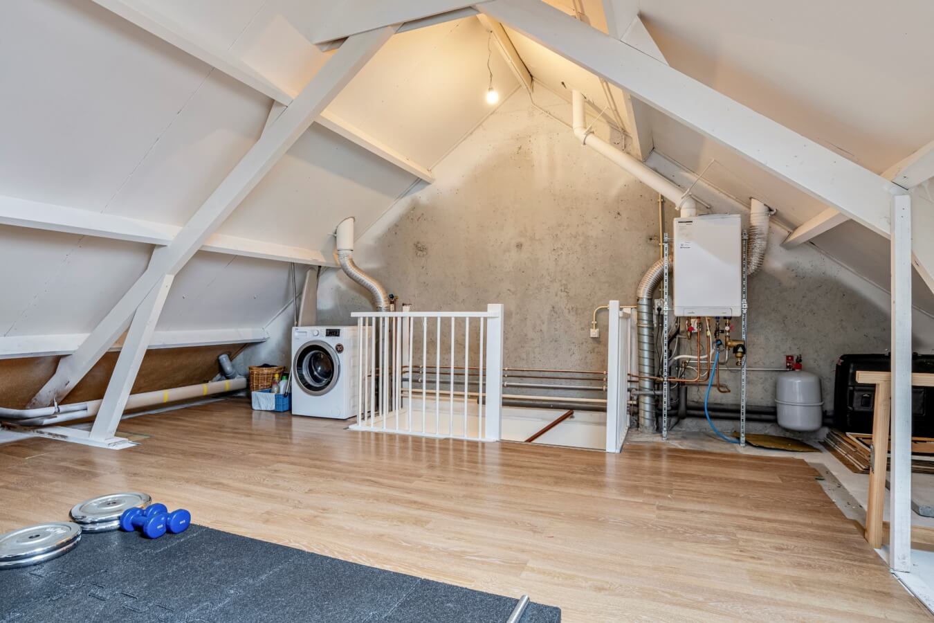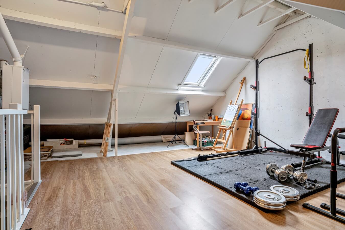 Via de vaste trap bereik je de zolderverdieping, die dienst kan doen als vierde slaapkamer of bijvoorbeeld als werk- of sportruimte.