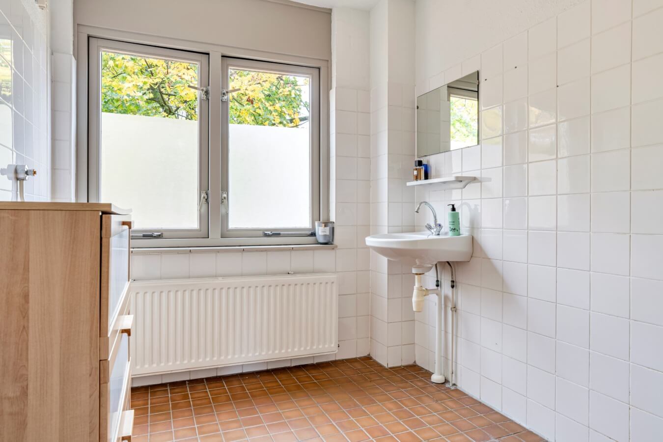 De badkamer beschikt over een inloopdouche en wastafel. Mocht deze niet helemaal binnen je smaak vallen dan heb je hier alle mogelijkheden om er iets moois van te maken